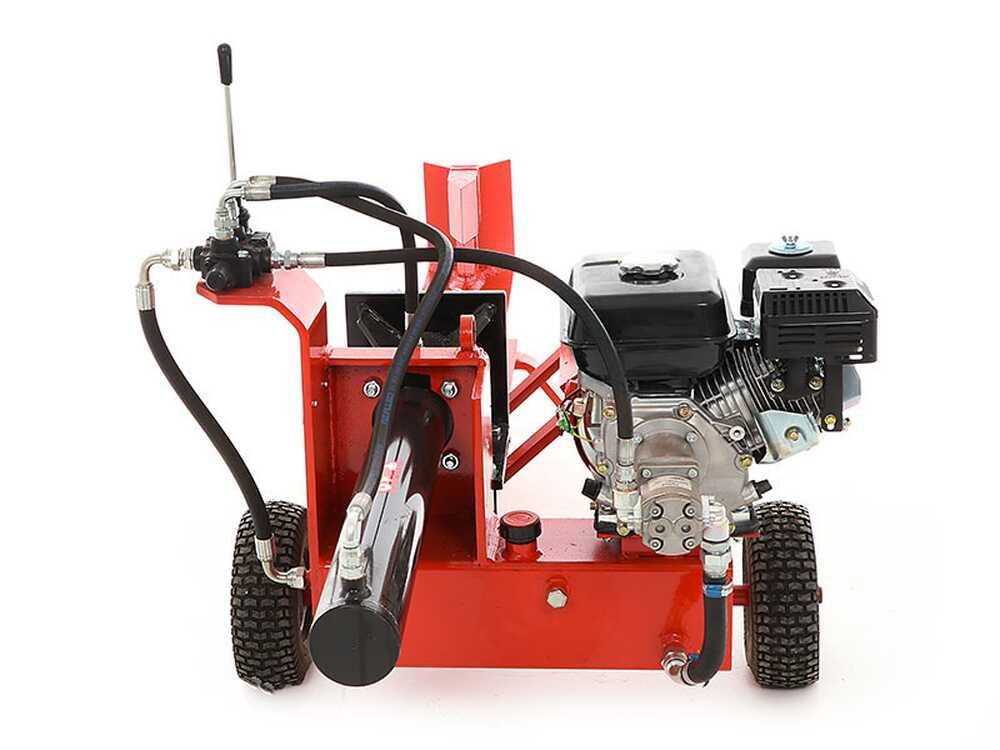 Benzin-Holzspalter für den semiprofessionellen Einsatz. Er erlaubt die Stämme wirksam und sicher zu spalten.