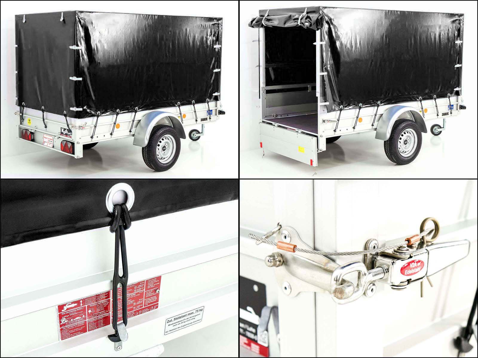 Anhänger mit Plane 125x250cm 750kg | Typ U4 | Hochplane 140 cm Profi | Schwarz-Neu