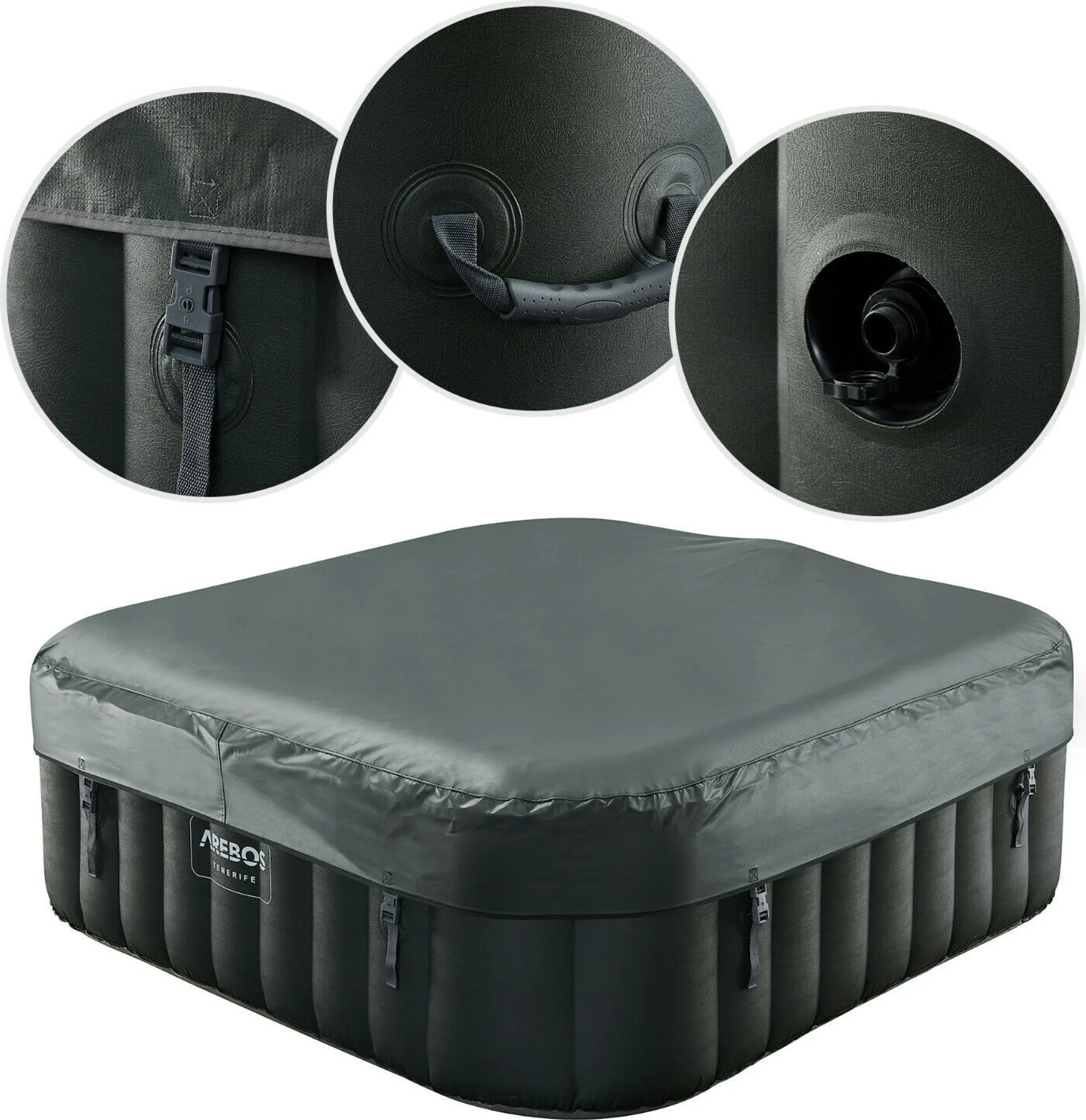 AREBOS Spa Whirlpool 6 Personen | 185x185 cm, 130 Düsen, LED & Bubble Massage