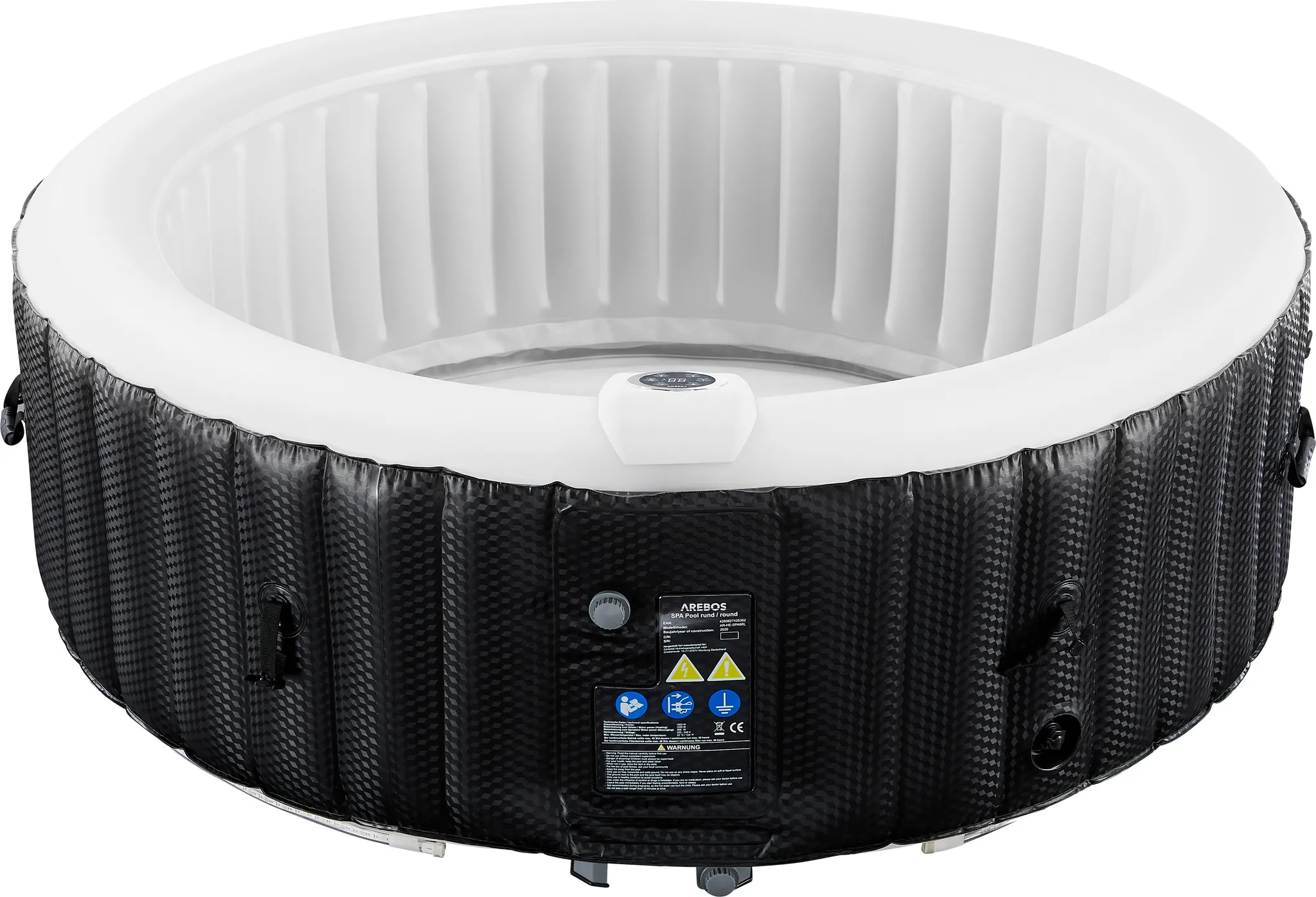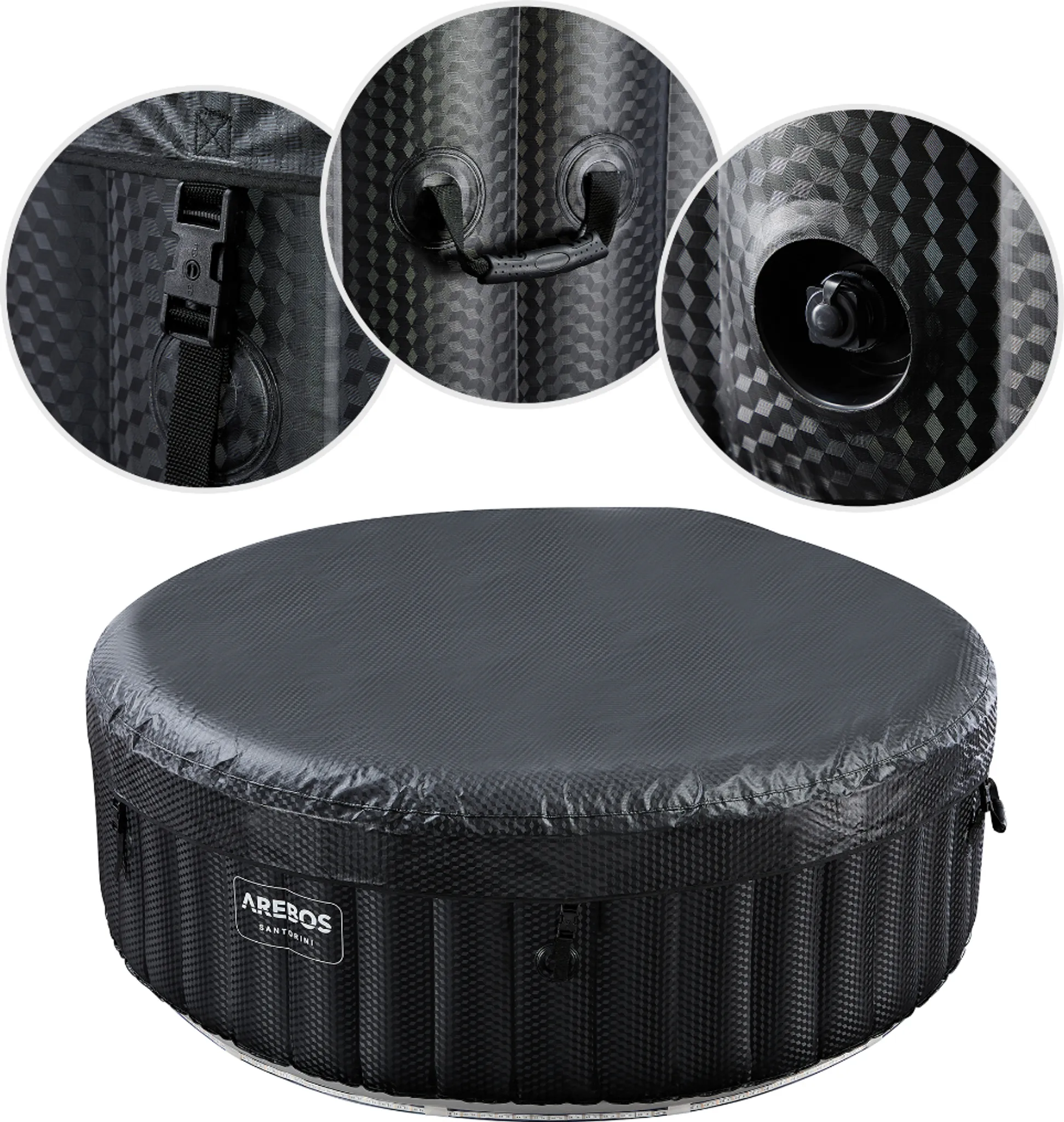 AREBOS Whirlpool, aufblasbar, 6 Pers., Ø 208 cm, 1000L, LED, 130 Düsen, Abdeckung