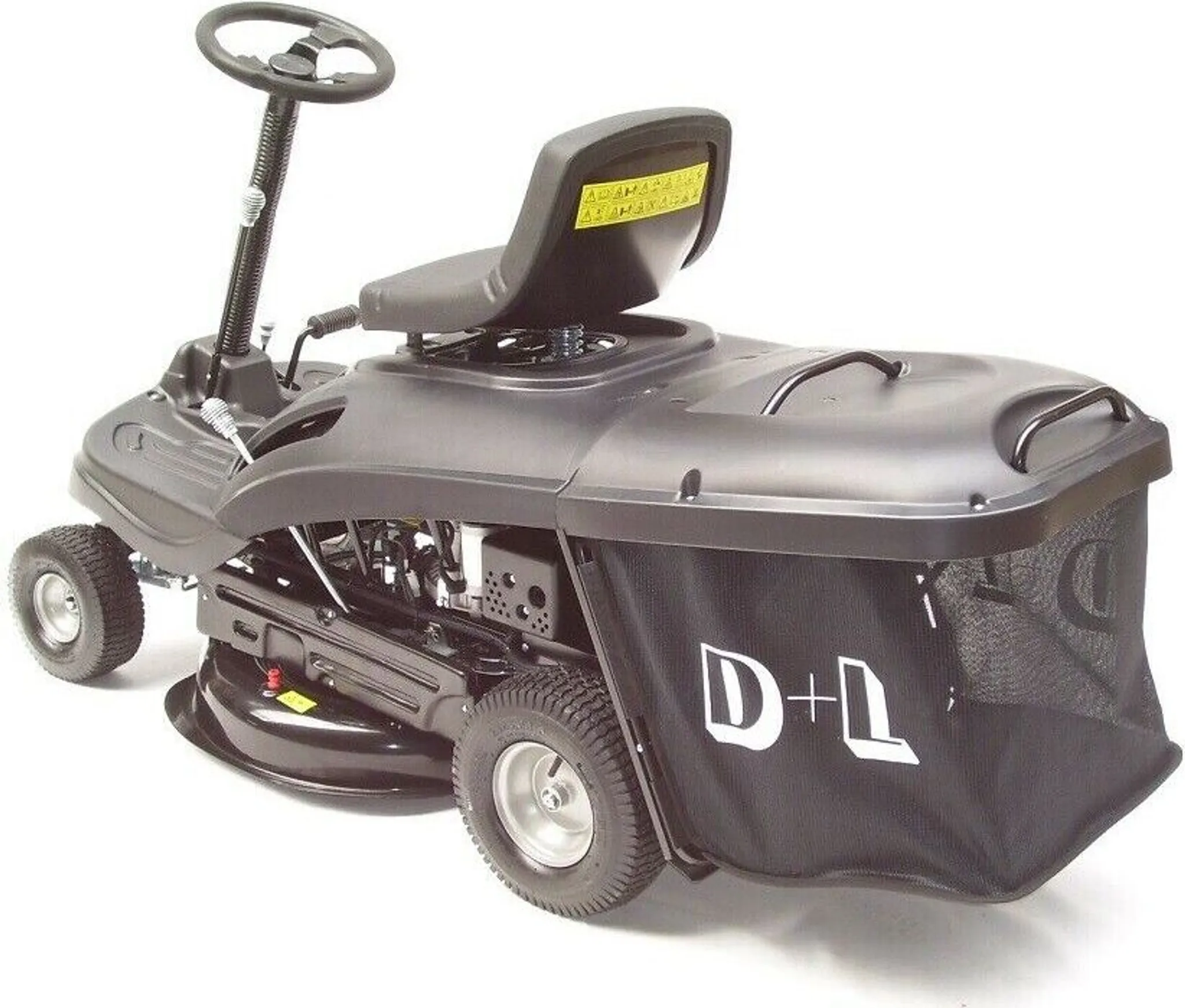 – wendiger 610 mm Aufsitzmäher mit Fangkorb und zentraler Schnitthöhenverstellung