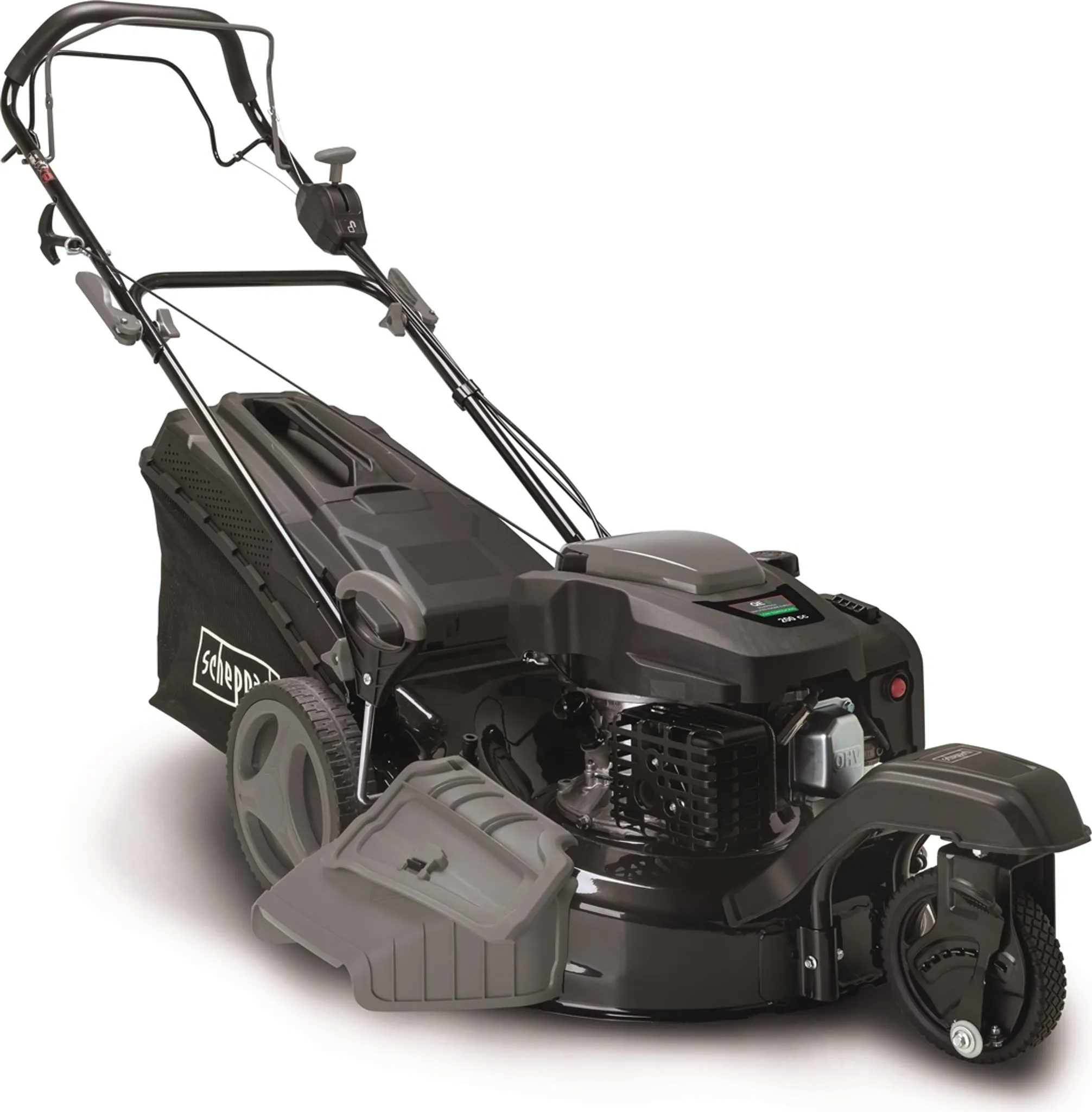 - 4-Takt OHV Markenmotor mit 200cm³ Hubraum und 3,5kW (4,8PS), Radantrieb mit 3km/h Vorwärtsgang, Motordrehzahlregler, XXL Schnittbreite von 97cm, variable Schnitthöhenverstellung zwischen 30-80mm, 2-Klingen-System mit Bodengleiter, Schneidemesser aus hochwertig geschliffenem Spezialstahl, robustes Stahlgehäuse, Ø33cm Räder mit Luftbereifung und speziellem Geländeprofil, höhenverstellbarer Griff, zentrale Einhebelbedienung des Balkenmessers.