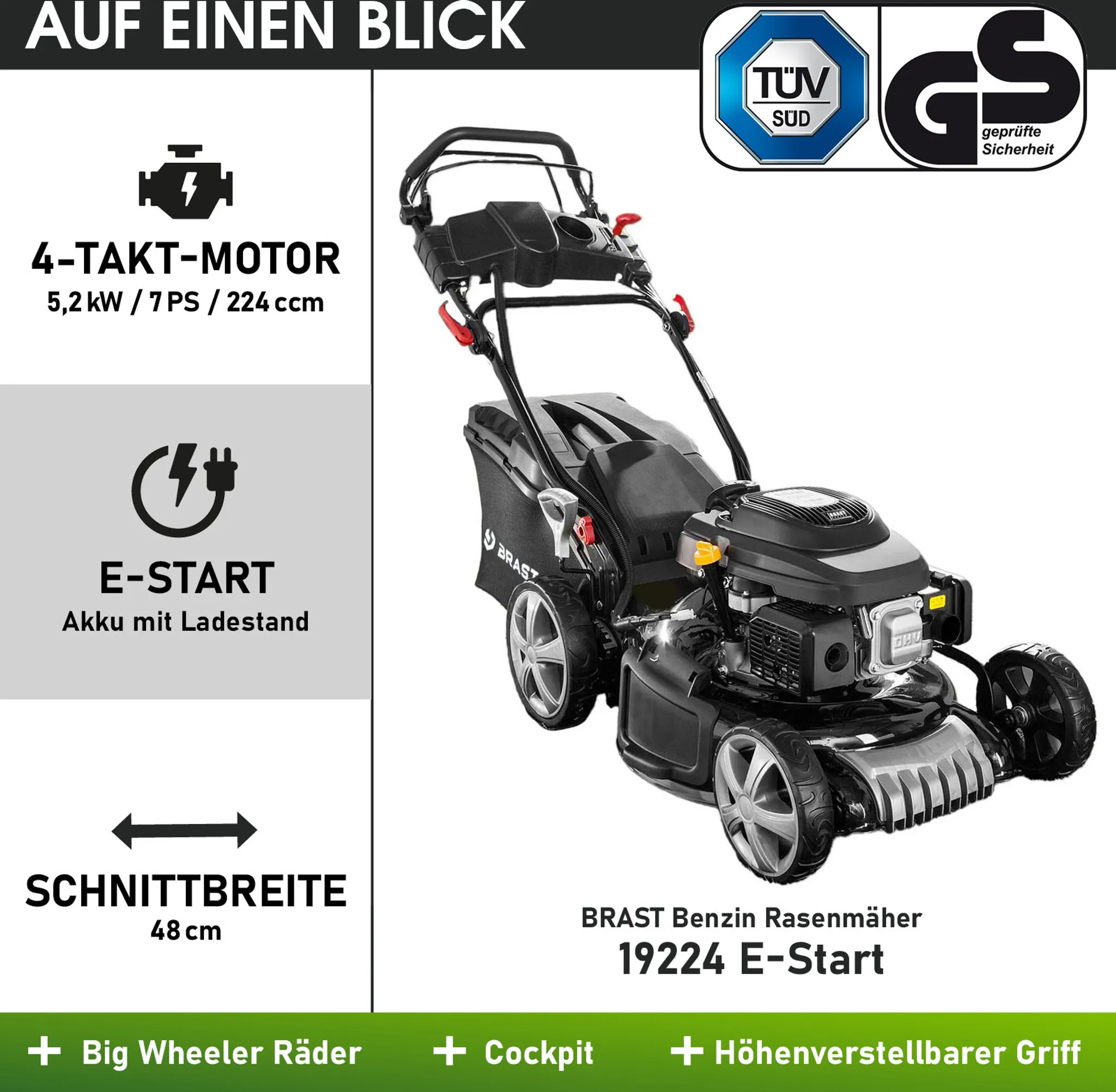 BRAST Benzin Rasenmäher 19224 ESTART