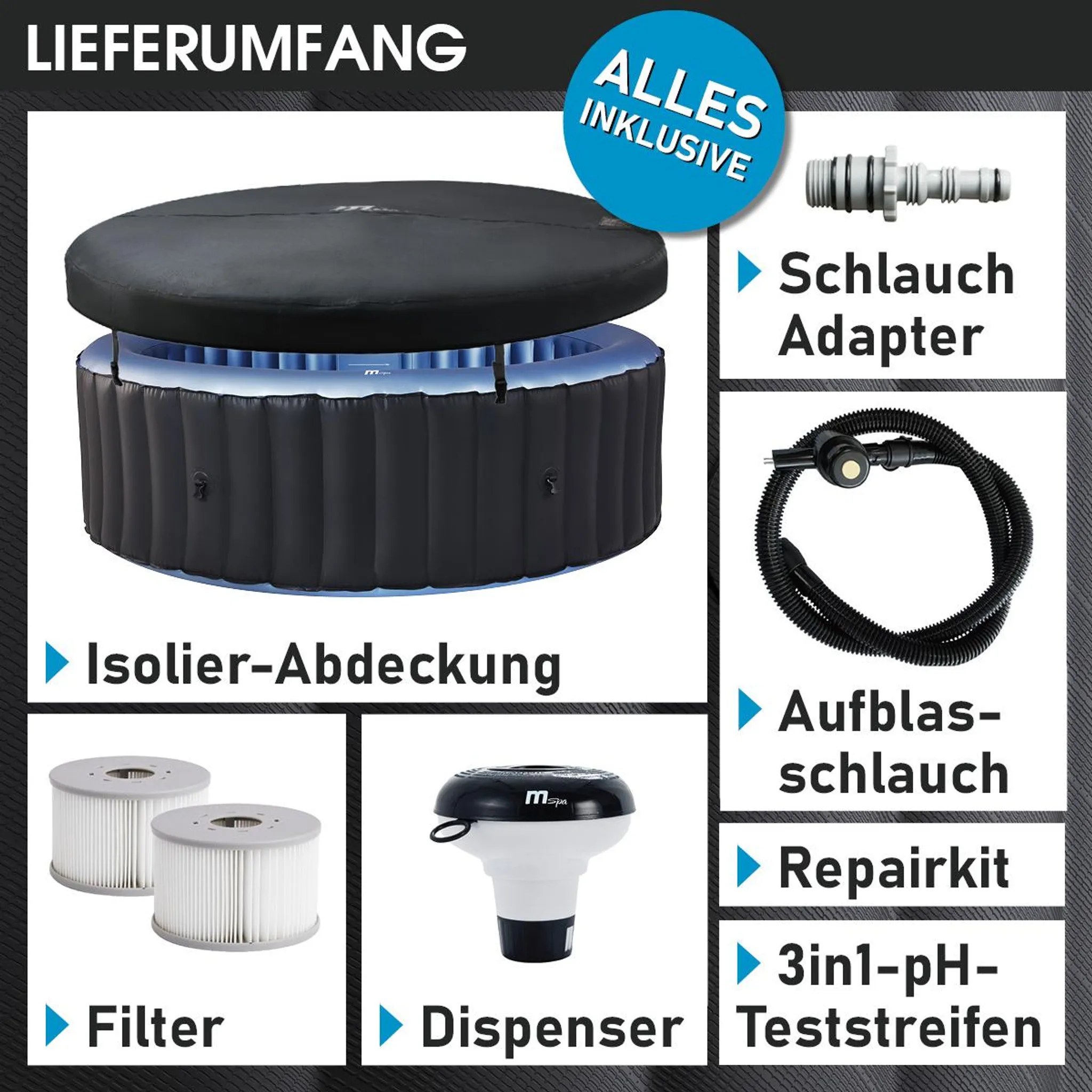 BRAST Whirlpool aufblasbar MSpa Bergen für 8 Personen | Ø224x70cm | In- Outdoor Pool | Ganzjähriger Einsatz | 144 Massagedüsen | Stromsparend inkl. Energiespar-Timer