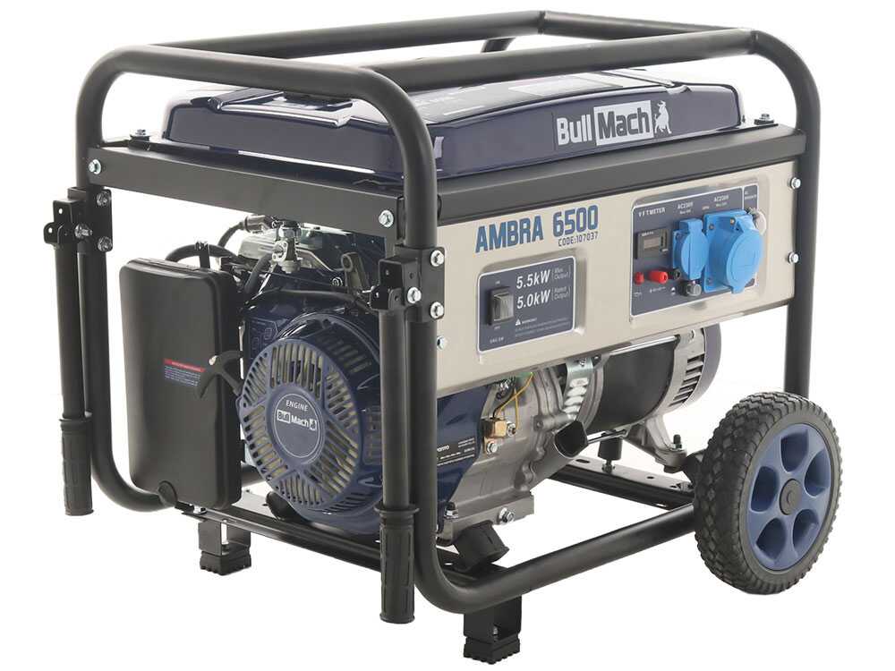 BullMach AMBRA 6500 – Benzin-Stromerzeuger auf Rädern mit AVR-Regelung 5.5 kW – Dauerleistung 5 kW – 230V