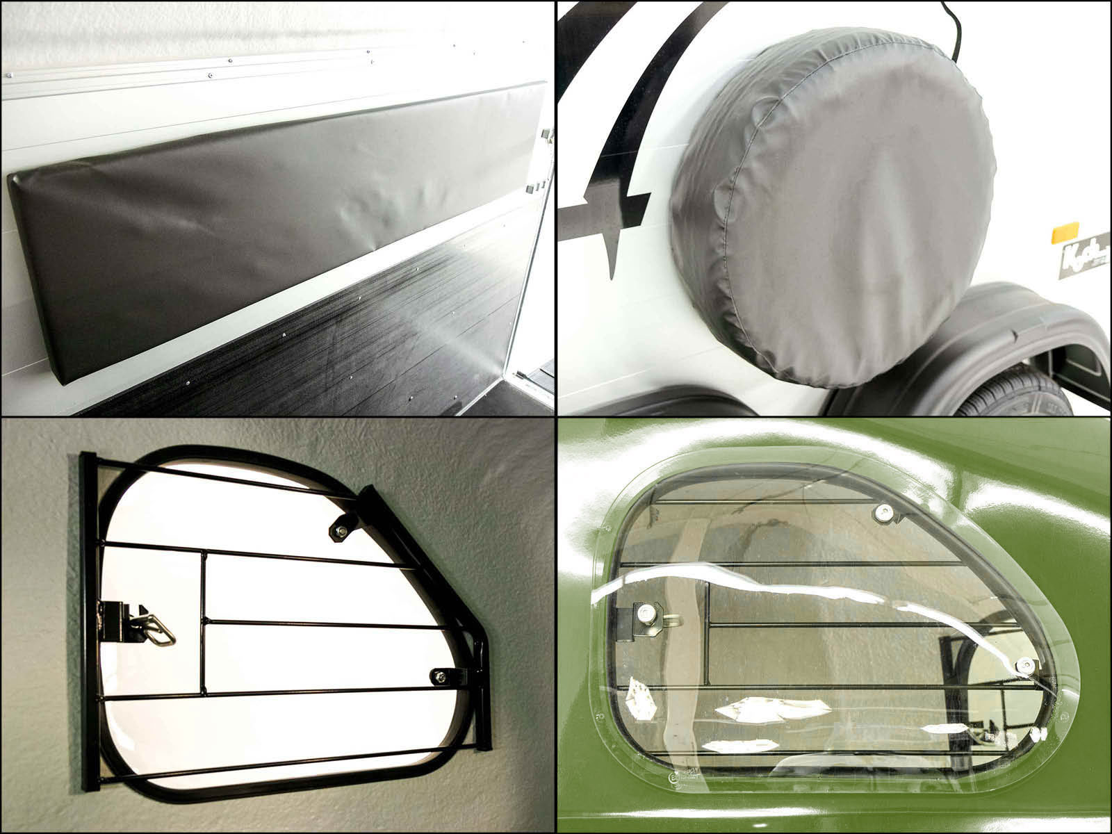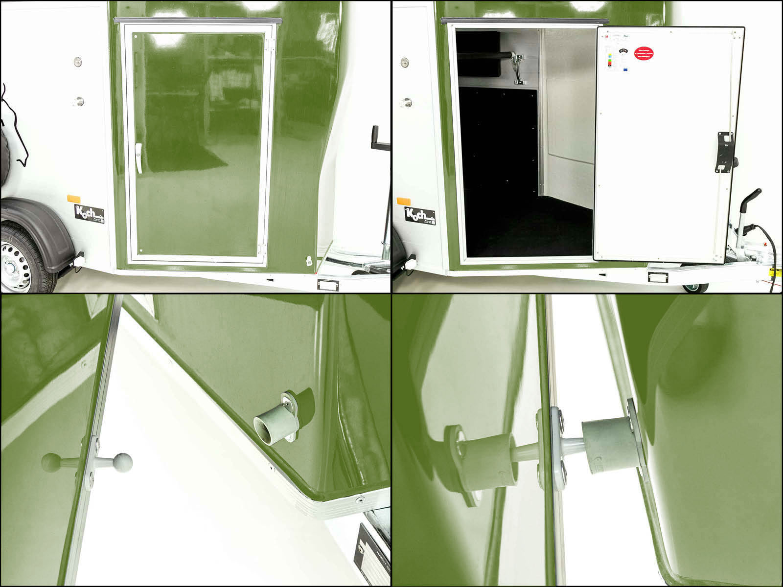 - Heckklappe aus Aluminium, dreh- und schwenkbar mit Gummibelag