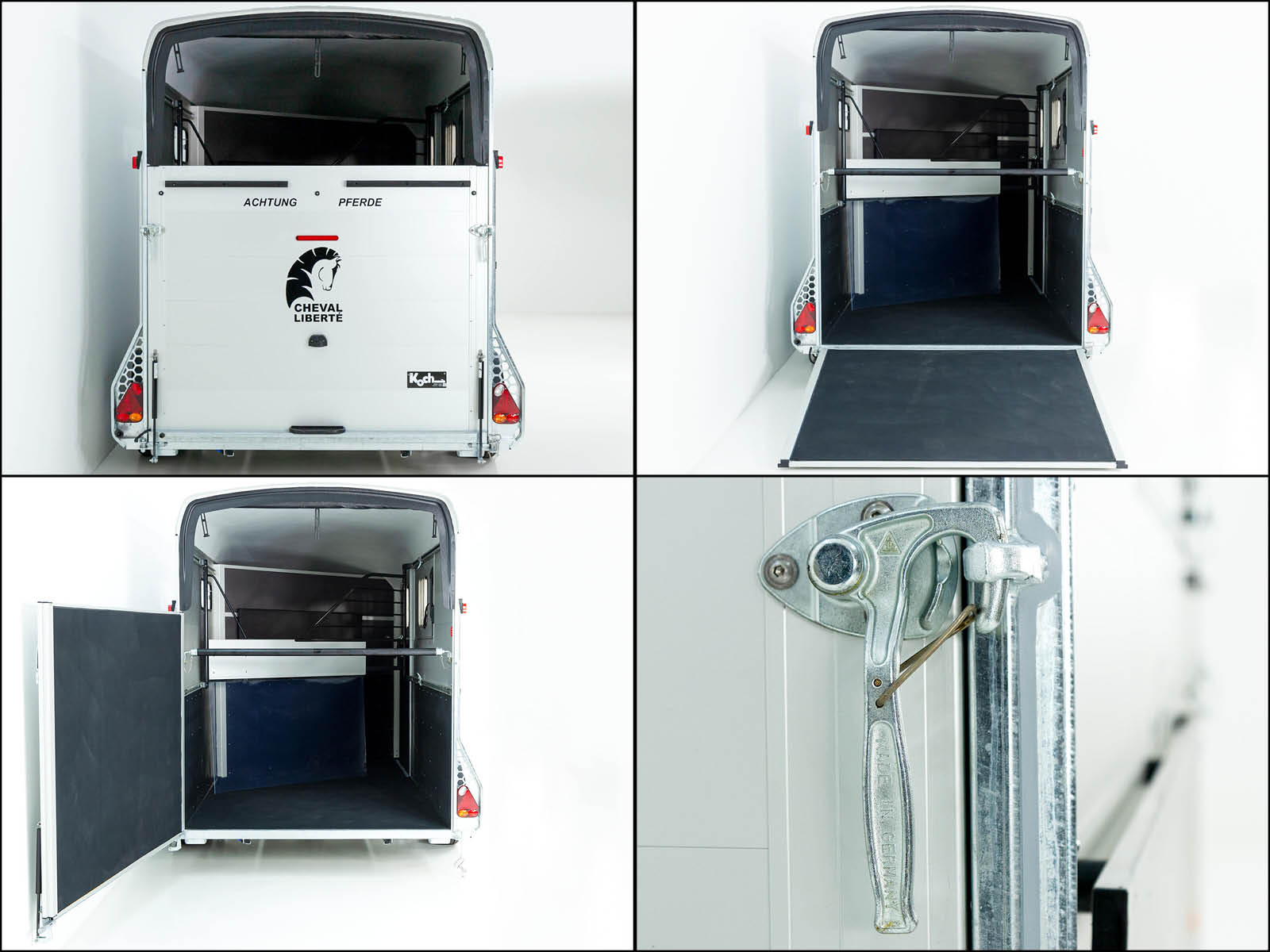 - Heckklappe aus Aluminium, dreh- und schwenkbar mit Gummibelag