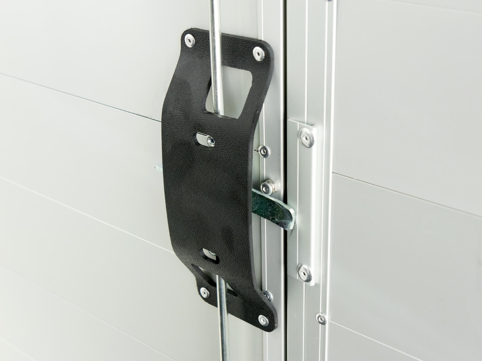 - Heckklappe aus Aluminium, dreh- und schwenkbar mit Gummibelag
