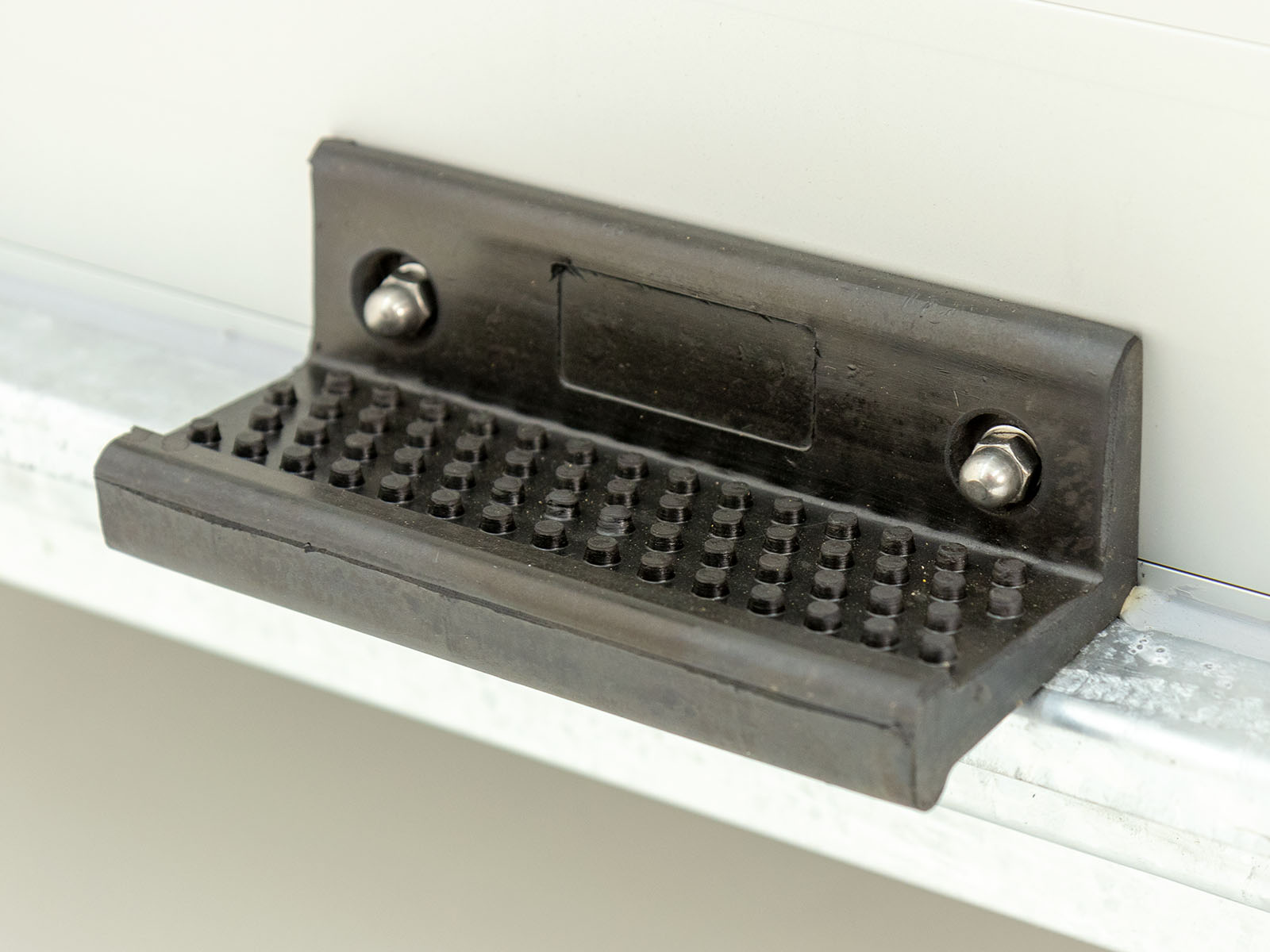 • Heckklappe aus Aluminium, dreh- und schwenkbar mit Gummibelag
