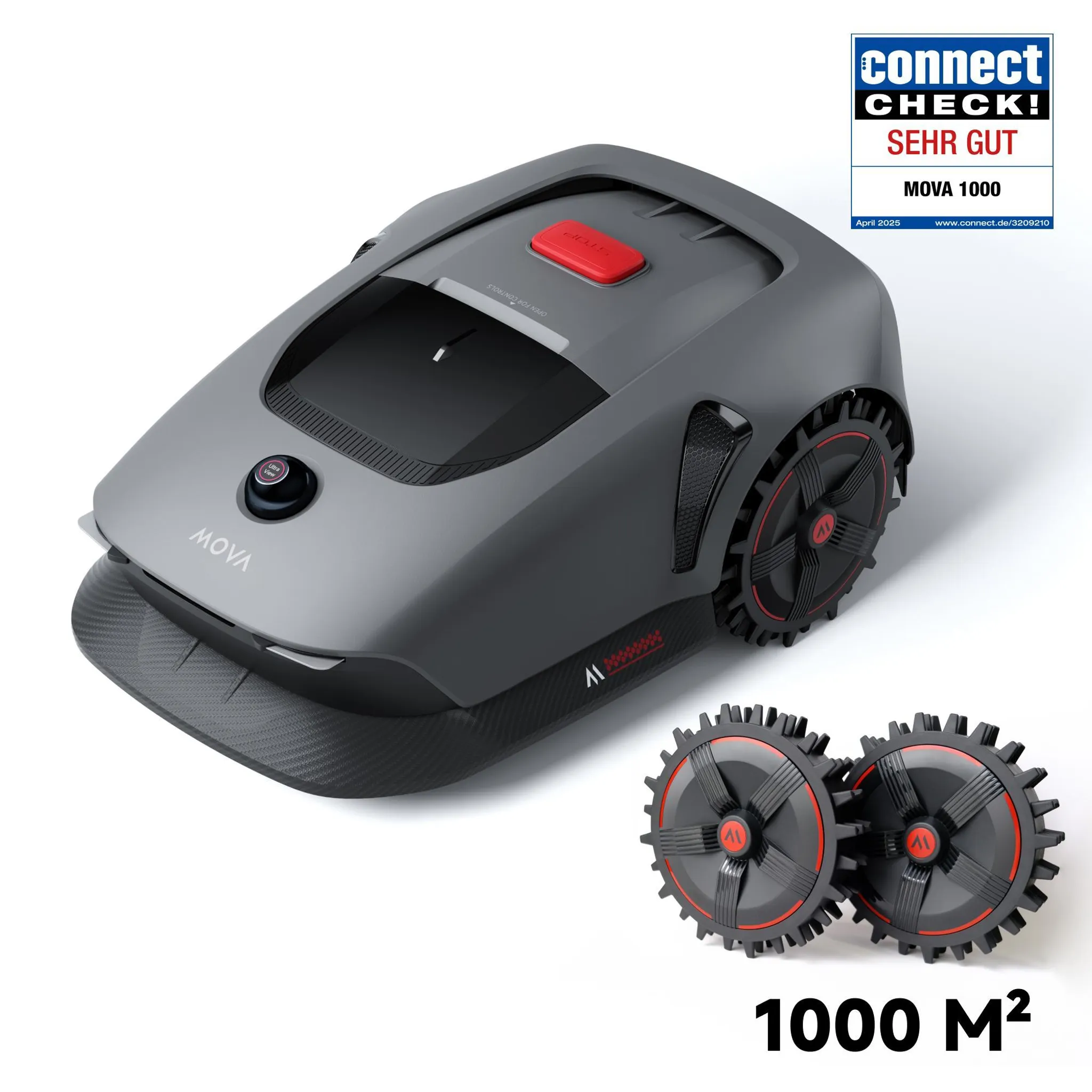 Die Schnitthöhe lässt sich in 7 Stufen von 30 bis 95 mm einstellen – von kurz getrimmt bis etwas höher für eine natürlichere Optik. Für hohen Fahrkomfort sorgen die Big-Wheel-Räder (vorn 203 mm, hinten 254 mm), die Unebenheiten gut ausgleichen und das Manövrieren erleichtern.