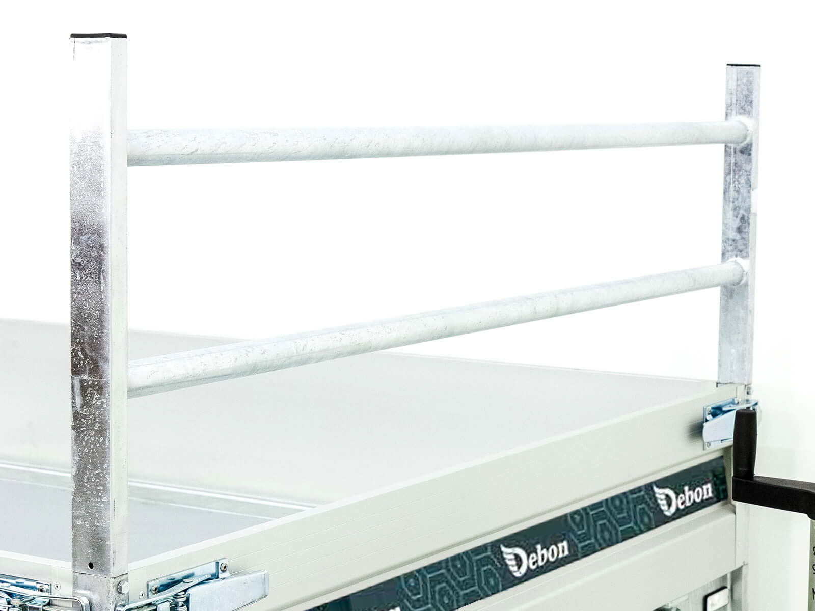 - Aluminium-Bordwände (350 mm), klappbar und abnehmbar.