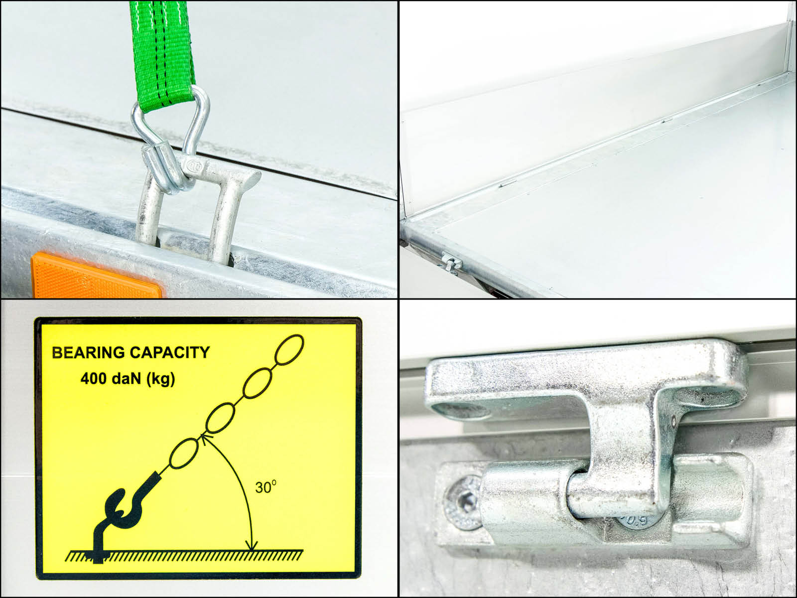 - Aluminium-Bordwände (350 mm), klappbar und abnehmbar.