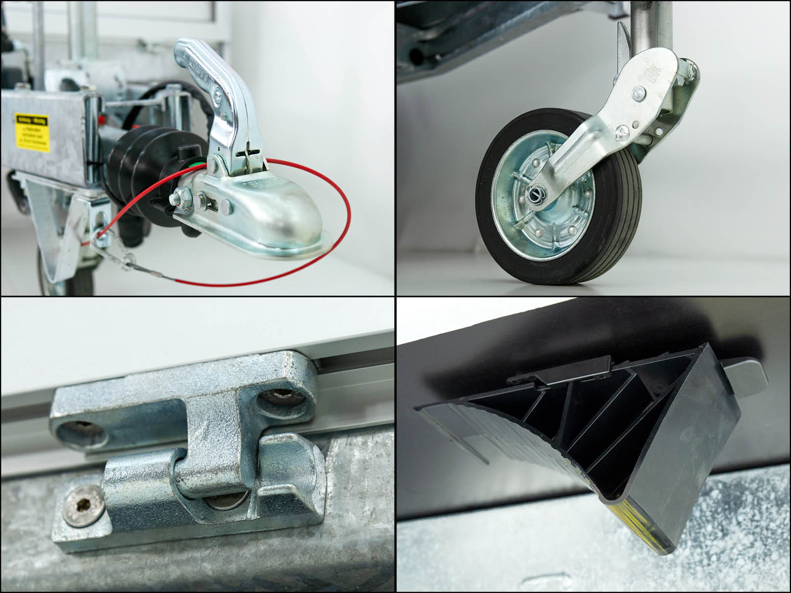 | Deichsel | V-Deichsel mit abschließbarer Zugkugelkupplung |