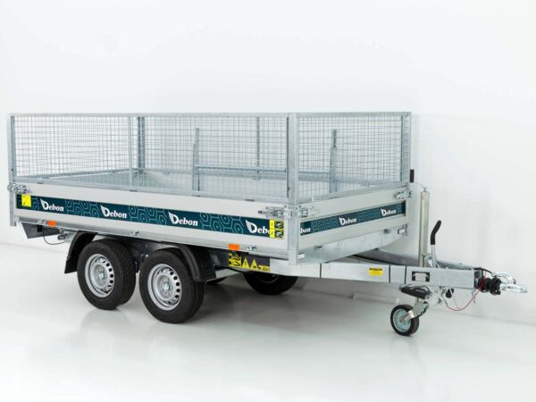 Der Debon Heckkipper 155x305cm 2,0t mit E-Pumpe bietet vielseitige Einsatzmöglichkeiten durch robuste Verarbeitung und praktische Funktionen.
