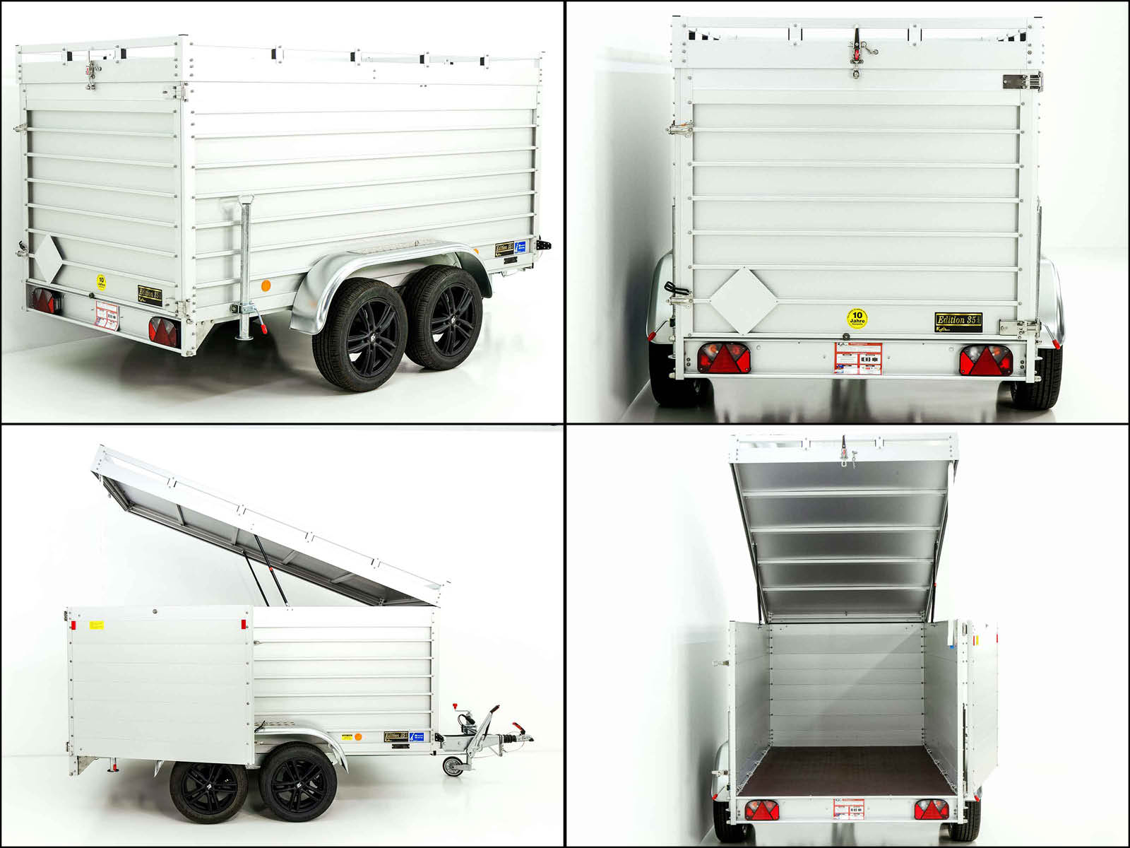 Der Deckelanhänger „Edition 35“ mit einem Lademaß von 150 x 300 x 125 cm und einem zulässigen Gesamtgewicht von 2600 kg ist ein leichter Aluminium-Anhänger mit einer Nutzlast von 2100 kg. Dieser Anhänger wird seit über 35 Jahren von -Anhängerwerken in Deutschland hergestellt und bietet Ihnen Qualität und Langlebigkeit.