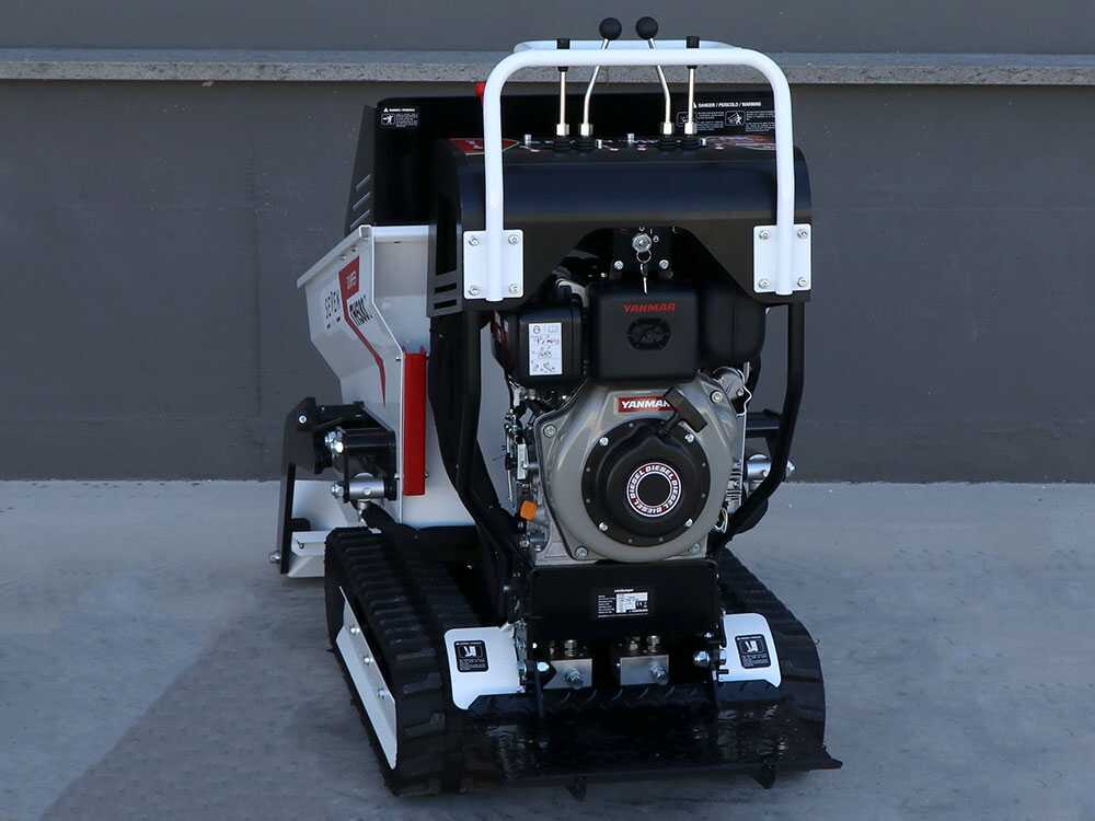 Die Bedienelemente sind einfach und intuitiv. Durch die dafür vorgesehenen Hebel kann man die Mulde anheben, die Raupen steuern und die Vorwärtsgeschwindigkeit einstellen. Weitere Merkmale dieser Dumper sind die Raupen, die für Stabilität und Sicherheit beim Einsatz der Maschine sorgen, auch bei schweren Lasten und an Hanglagen, die normale Schubkarren nicht bewältigen können.