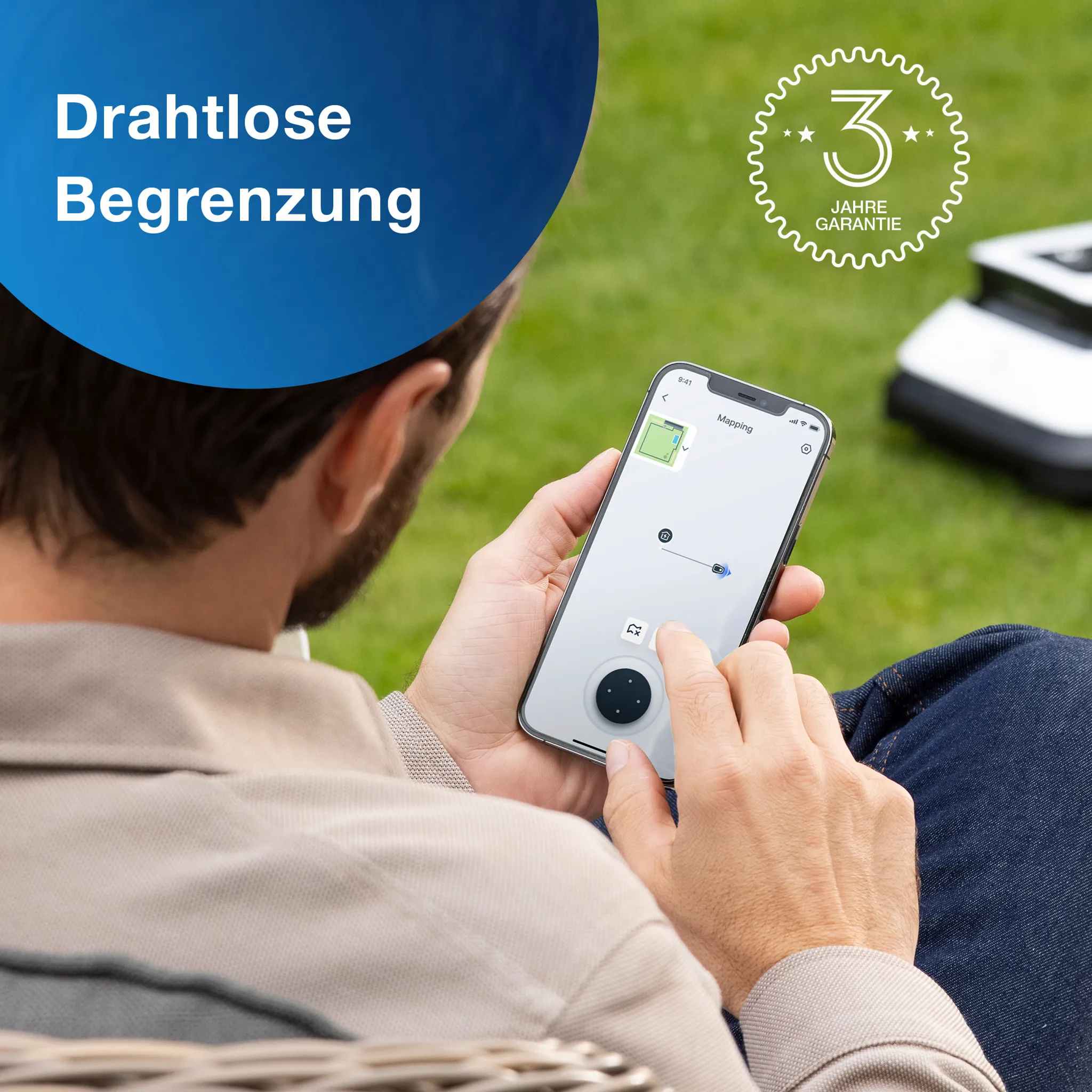Ersetze die elektronischen Drähte durch ein Bakensignal und vervollständige die drahtlose Begrenzungseinstellung für einen Standardgarten mit einem Klick auf der App.