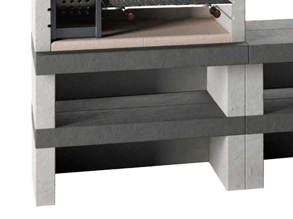 Mit einer Gesamtfläche von 220x85x180 cm und einem Gewicht von 950 kg garantiert der Grillkamin eine stabile und solide Struktur.