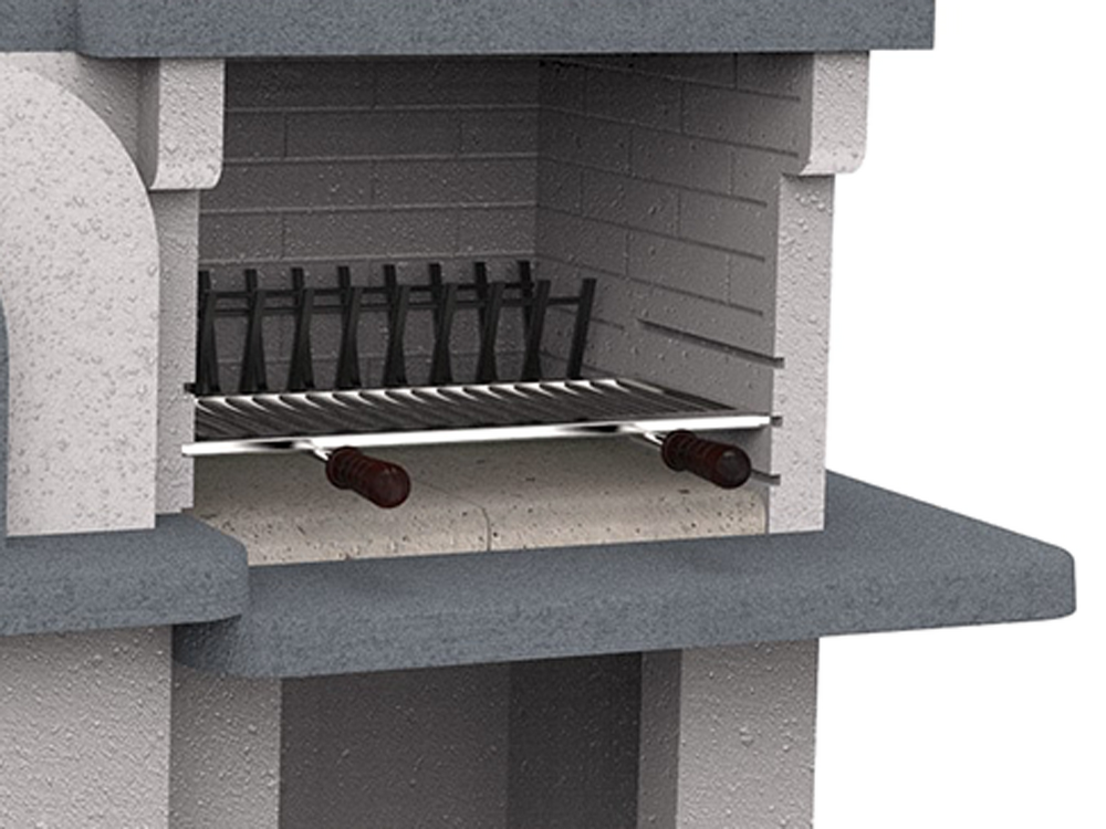 - Grillrost: Verstellbar, 79 x 35 cm, aus lebensmittelechtem Edelstahl mit Holzgriffen.