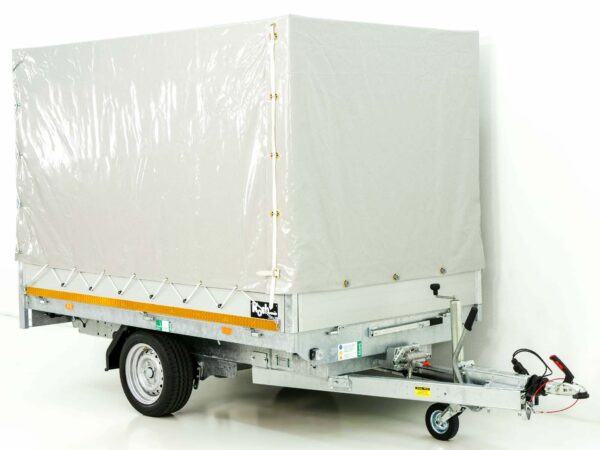Der Eduard Heckkipper in dieser Version bietet eine elektrische und Handpumpe für eine flexible Bedienung. Mit einem Gitteraufsatz von 70 cm eignet sich dieser Anhänger besonders für den Transport von lockeren Materialien und kann mit einer maximalen Nutzlast von 1.454 kg beladen werden.