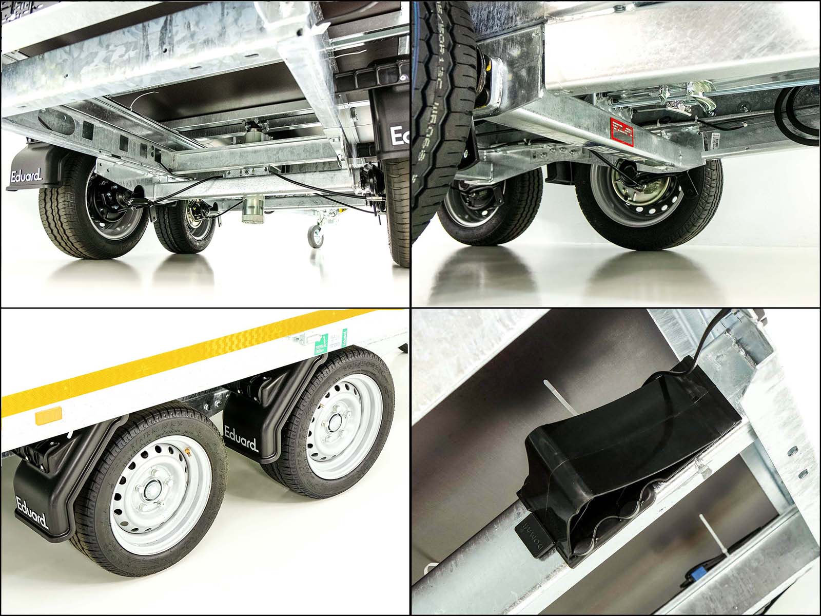 | Fahrwerk | 2 Achsen, Gummifederachse (wartungsfrei) |