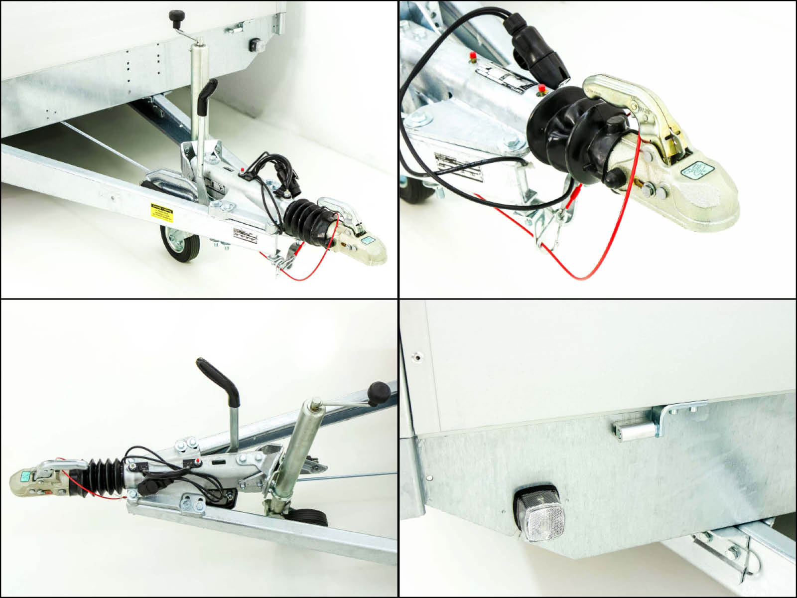 Der Eduard Hochlader Anhänger 5022 GD mit einem Laderaum von 220×506 cm und einem zulässigen Gesamtgewicht von 3,5t bietet eine Nutzlast von ca. 2762 kg. Er ist mit abnehmbaren Aluminium-Bordwänden (300 mm hoch) ausgestattet und hat 20 Verzurrösen im Bodenrahmenprofil für eine sichere Ladungssicherung. Der feuerverzinkte Stahlrahmen garantiert eine lange Lebensdauer, und das Automatik-Stützrad erleichtert das Handling.