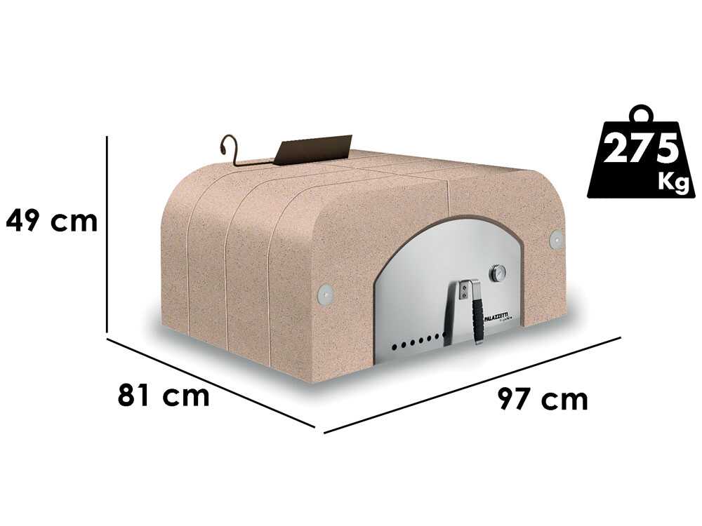 Mit den Außenmaßen von 51 x 59 x 21 cm und den Innenmaßen von 35 x 41 x 7,5 cm ist er für das Backen von Pizzen bis zu einem Durchmesser von 34 cm geeignet. Das kompakte Design ermöglicht eine einfache Platzierung in jeder Küche.