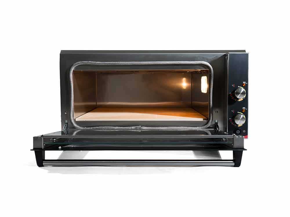 Zu den wichtigsten Merkmalen des P150HA gehört ein zertifizierter feuerfester Pizzastein für gleichmäßiges, knuspriges Backen. Darüber hinaus ist der Garraum mit einer internen Halogenlampe ausgestattet, die es ermöglicht, den Garprozess jederzeit zu überwachen.