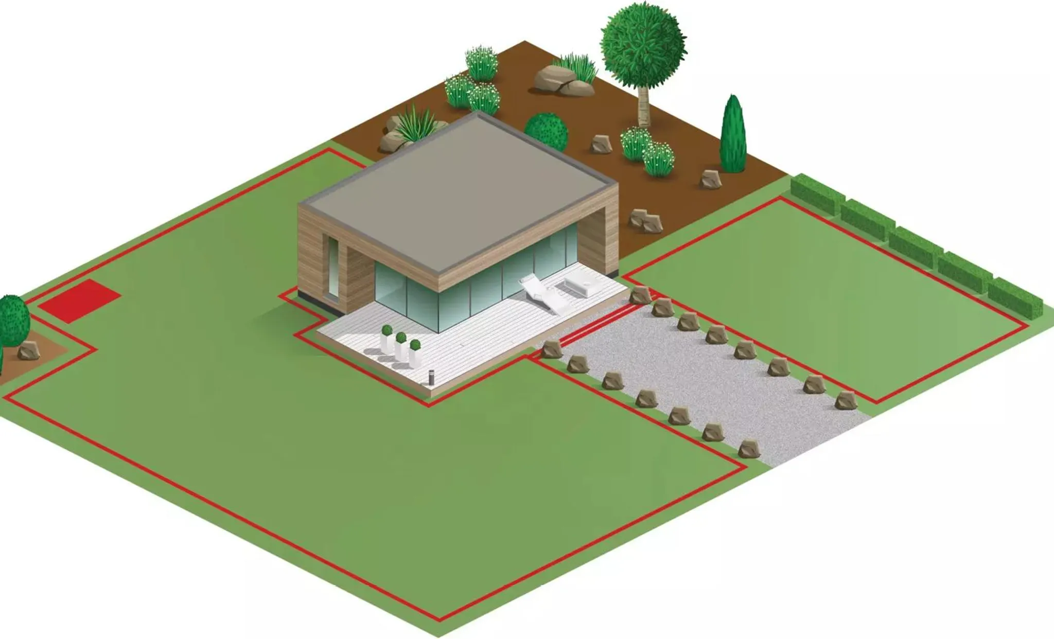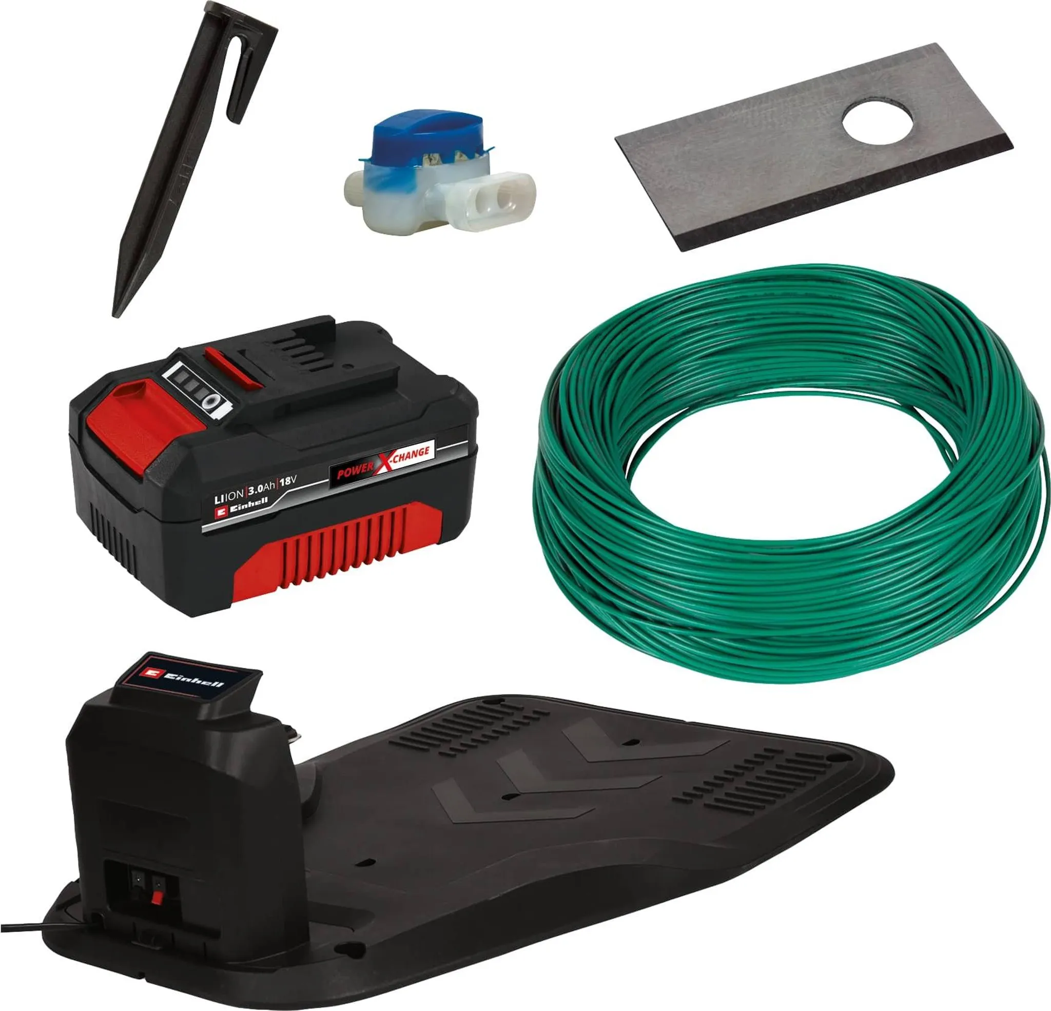• Inkl. 135 m Begrenzungsdraht und 190 Befestigungshaken