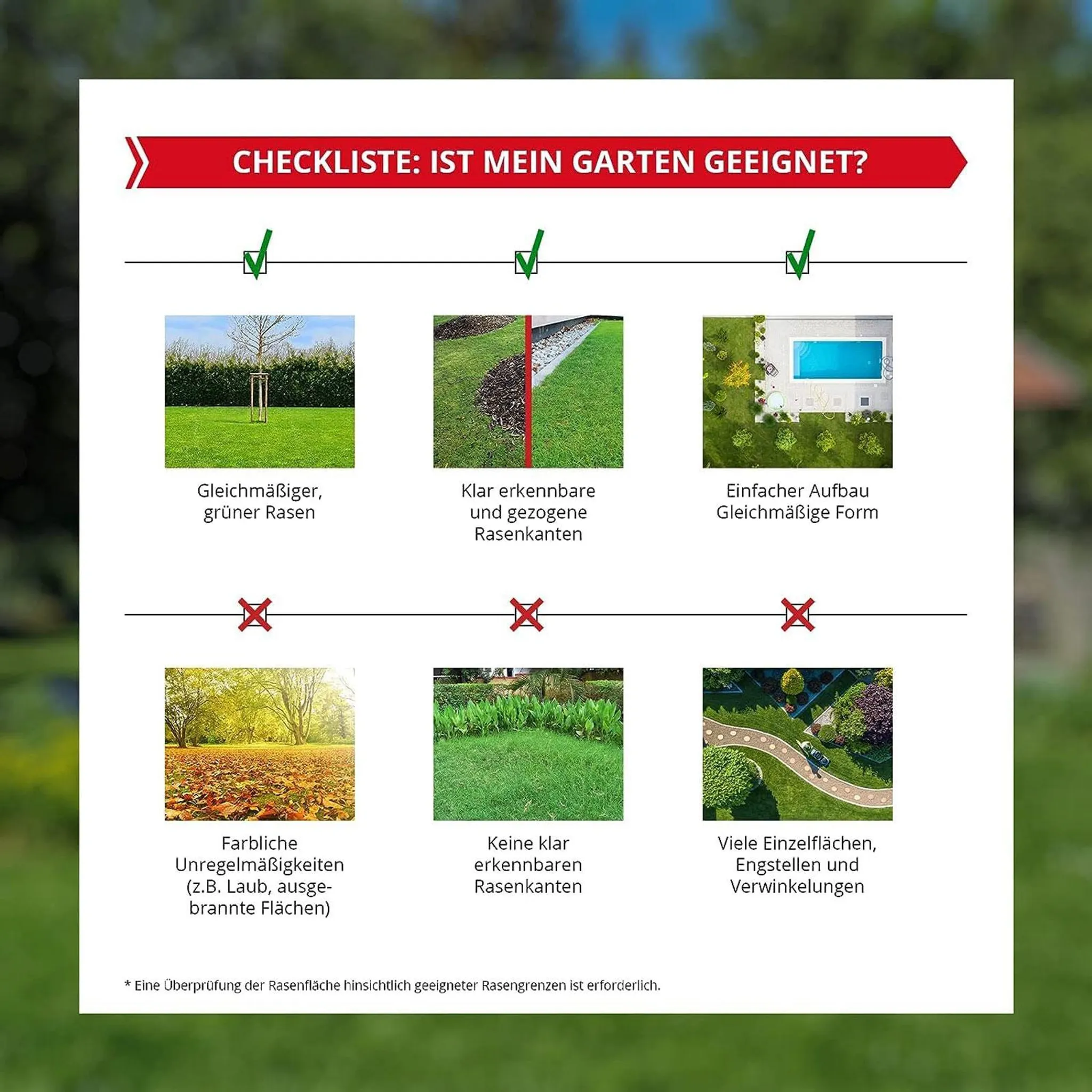 - Max. empfohlene Rasenfläche: 500 m²