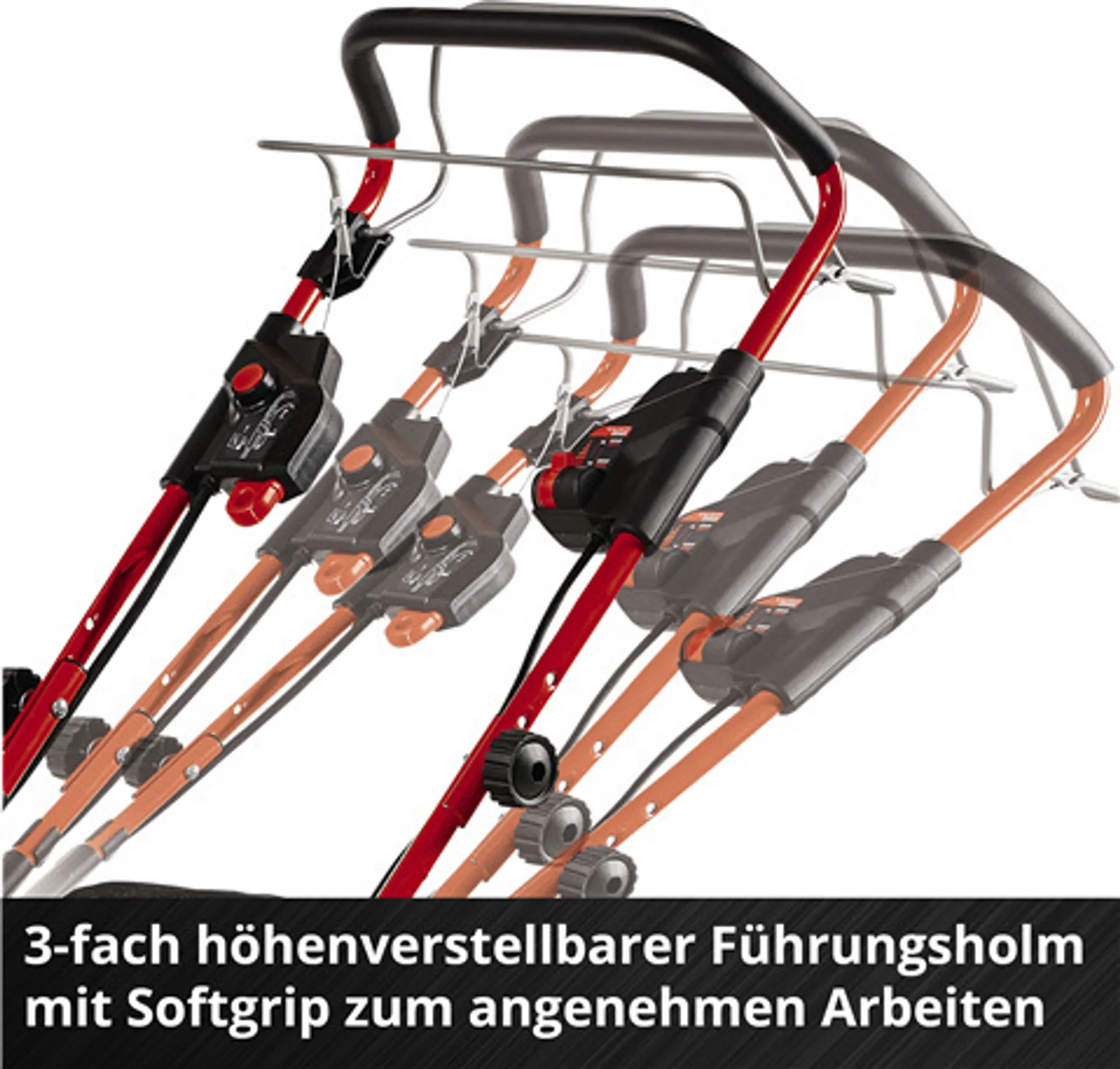 – 3-fach höhenverstellbarer, klappbarer Führungsholm mit Softgrip