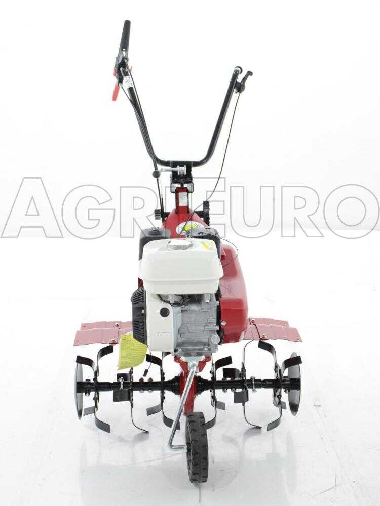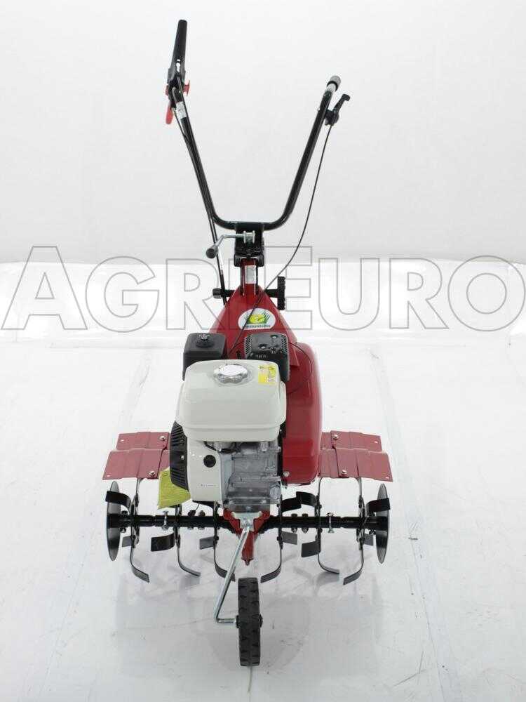 Das ist eine Gartenfräse für den Hausgebrauch mit Honda GP 160 Verbrennungsmotor, obenliegenden Nockenwellen, mittleren Abmessungen, für mittelschwere Landarbeiten und den Abbau von mittleren Flächen außergewöhnlich wirksam.