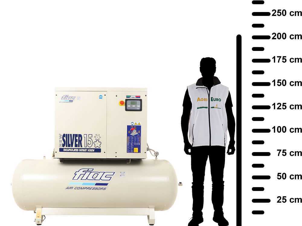 Der Schraubenkompressor FIAC NEW SILVER 15/500 weist eine Motorleistung von 15 PS, 11 Kw und Ansaugleistung von 1430 Lt/Min auf. Es verfügt über einen Tank mit Fassungsvermögen von 500 Liter, der einen max. Druck von 10 Bar erzeugt.