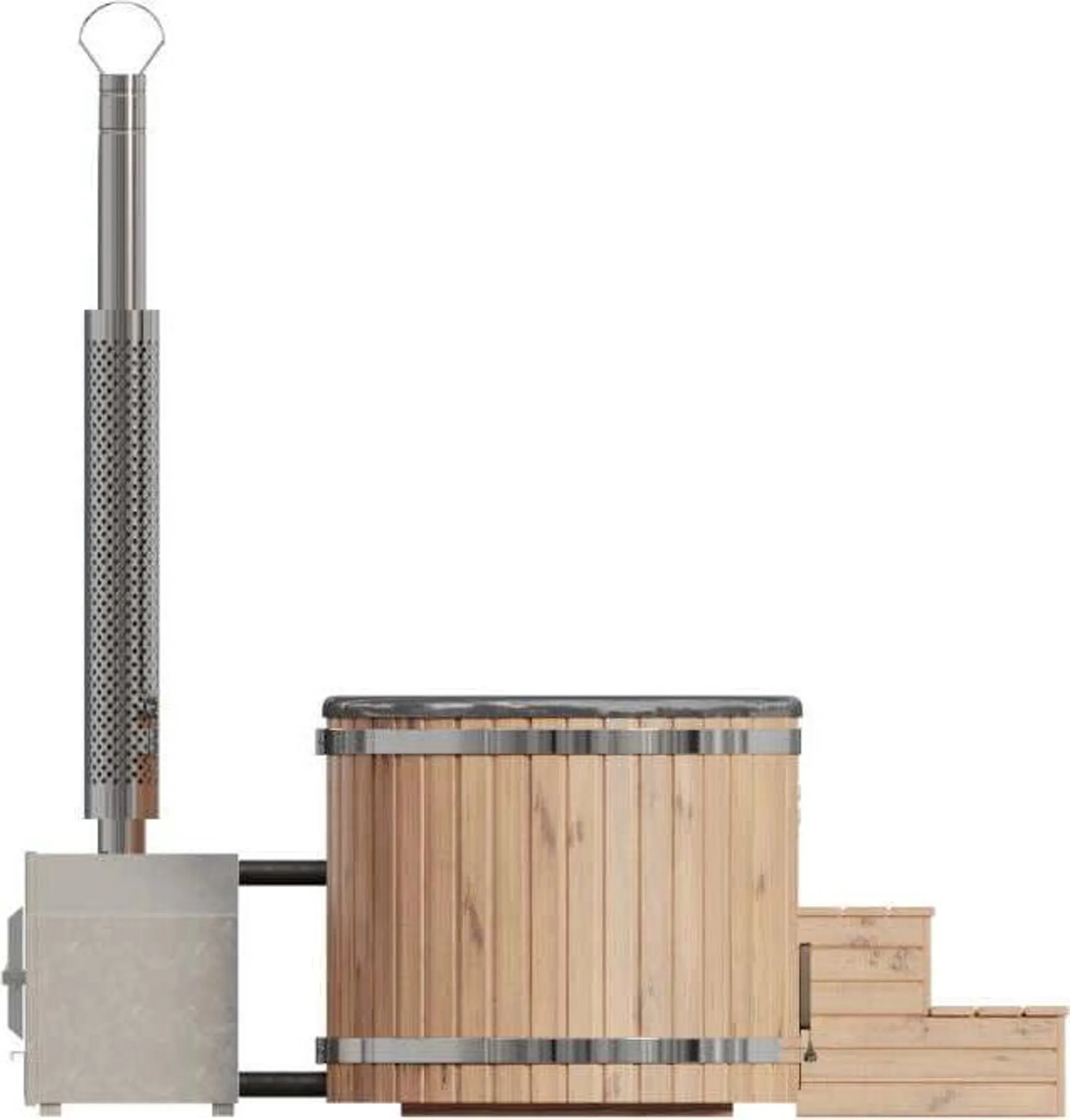FinnTherm Holz Badefass Malmö aus Thermoholz, Whirlpool, Hot Tub 185 x 118 x 96 cm, 8 Personen, inkl. Edelstahl-Ofen (24 kW), inkl. Deckel und Deckel Schwimmbecken, Badebottich, Sprudelbad