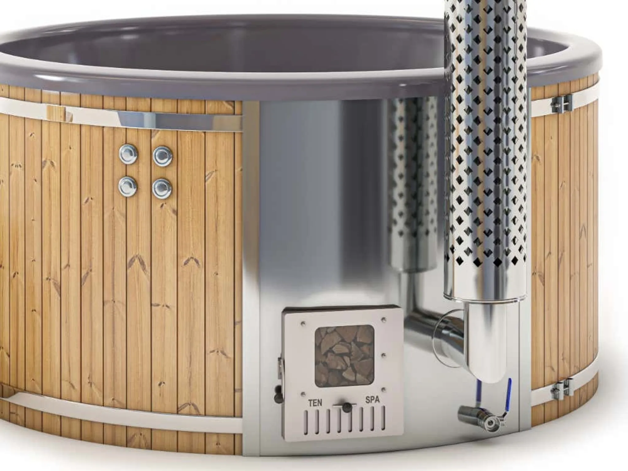 Mit dem Badefass Stockholm „Spa Edition“ bleiben keine Wünsche offen. Genießen Sie das traditionelle Warmwasserbad für sich oder aktivieren Sie eine der Whirlpool Funktionen. Neben der klassischen Luftmassage, die über 15 Düsen betrieben wird, verfügt dieser Hot Tub über 6 weitere Hydro Düsen. Hiermit lassen sich, über punktgenaue Massagen, jegliche Verspannungen auflösen Die integrierten Farbwechsel LEDs sorgen dabei für das richtige Ambiente.