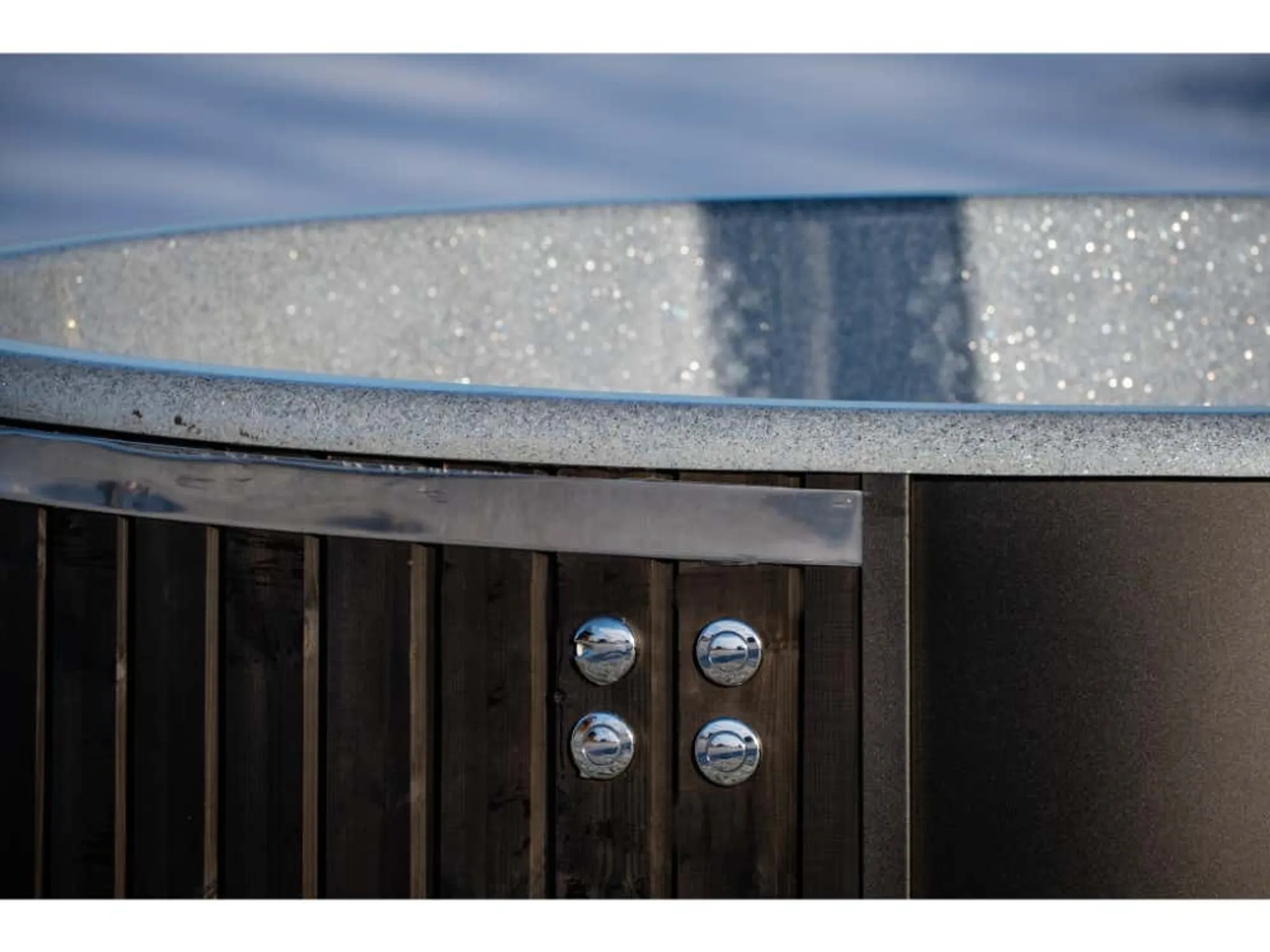 Das Badefass Stockholm „Spa Edition“ Deluxe setzt, neben seiner hochwertigen Ausstattung, auf attraktive Design Elemente. So überzeugt dieser Hot Tub mit schwarz lasiertem Thermoholz und schwarzen Lederdeckel. Das Highlight ist jedoch das neuartige, marmorierte Design der Innenwanne. Auch an Spa Funktionen wurde nicht gespart. Neben der klassischen Luftmassage, die über 15 Düsen betrieben wird, verfügt dieser Hot Tub über 6 weitere Hydro Düsen. Hiermit lassen sich, über punktgenaue Massagen, jegliche Verspannungen auflösen. Die integrierten Farbwechsel LEDs sorgen dabei für das richtige Ambiente.