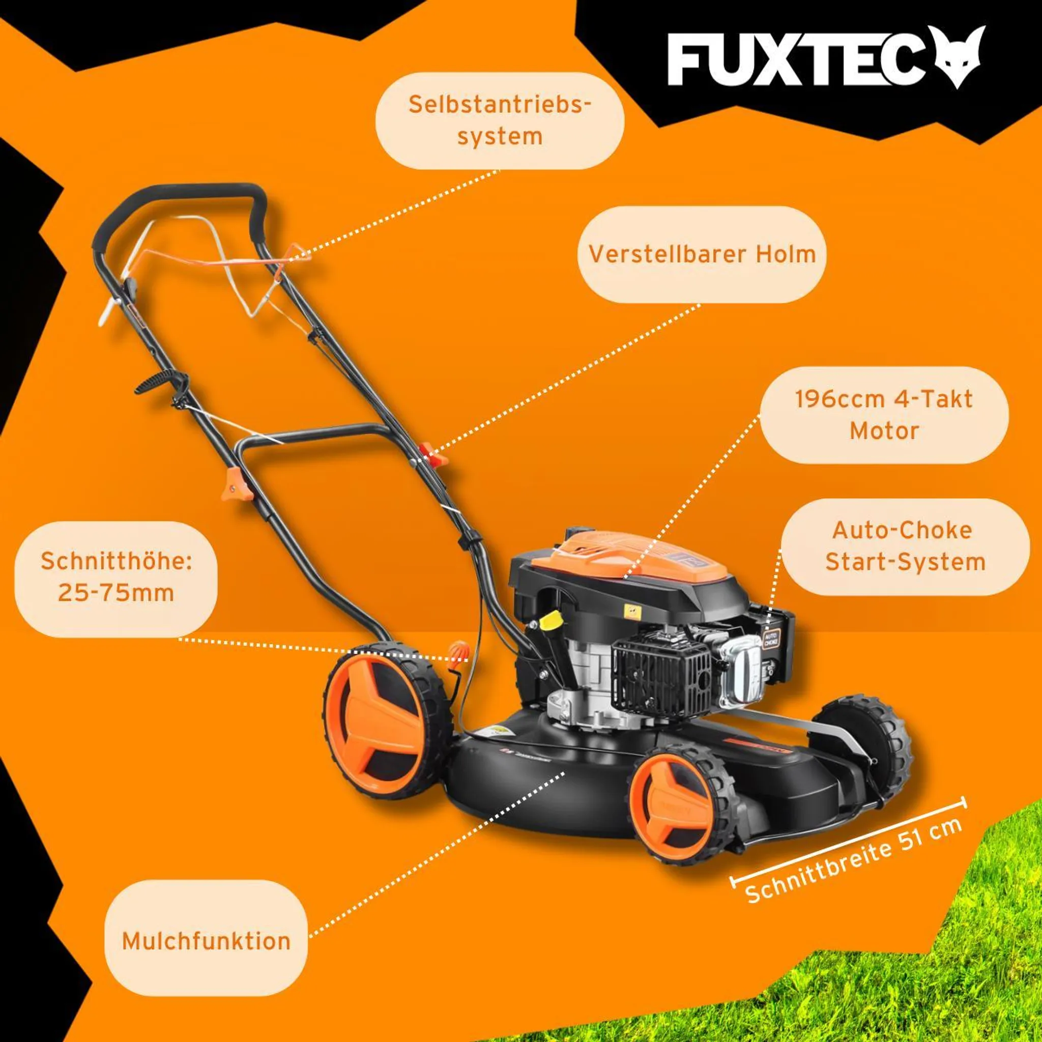 Der FUXTEC Benzin Rasenmäher FX-RM51SA96