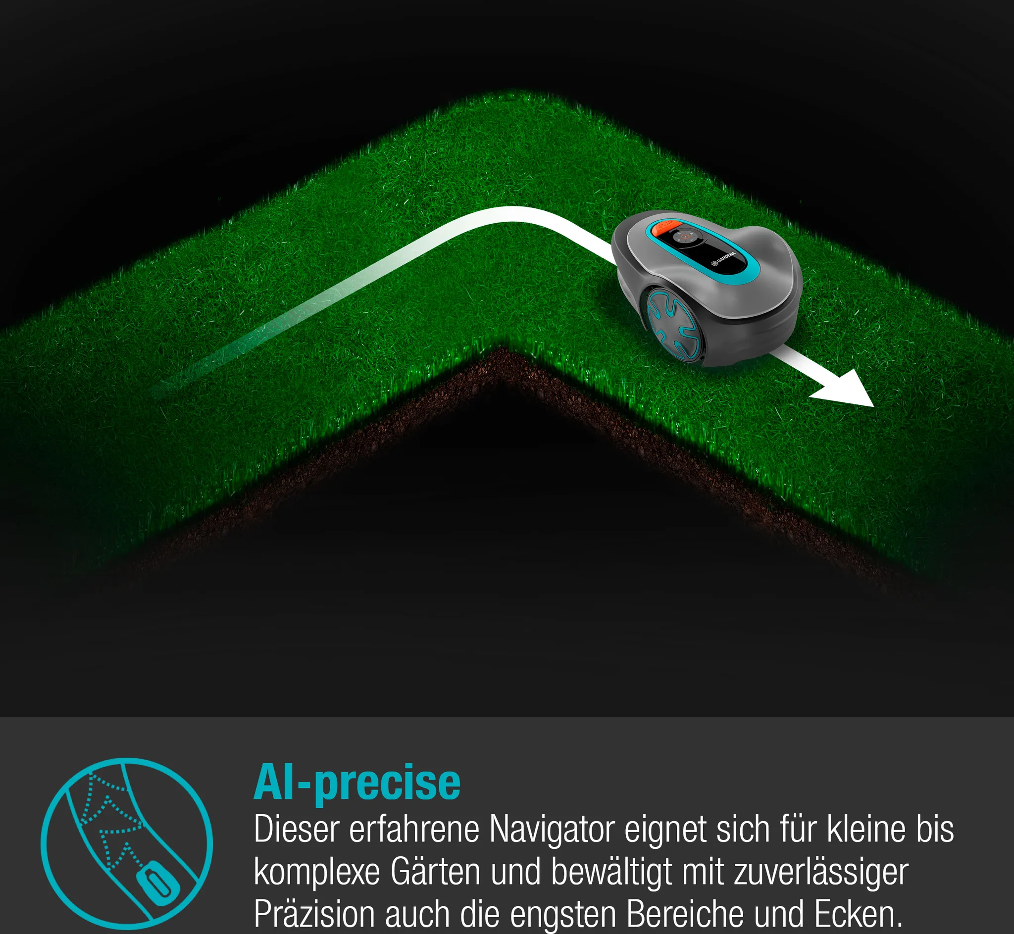 - Geräuscharmer, vielseitiger und intelligenter Rasenmäher mit optimaler Konnektivität. Ideal für kleinere und komplexe Rasenflächen. Einfache Bedienung über GARDENA Bluetooth® App. CorridorCut-Funktion für schwer zugängliche Bereiche. SensorControl für bedarfsgerechtes Mähen. Auto Weather & Terrain für Mähen bei jedem Wetter. Frostsensor. Bewältigt Steigungen bis 25 Prozent. Einfache Reinigung mit Gartenschlauch.