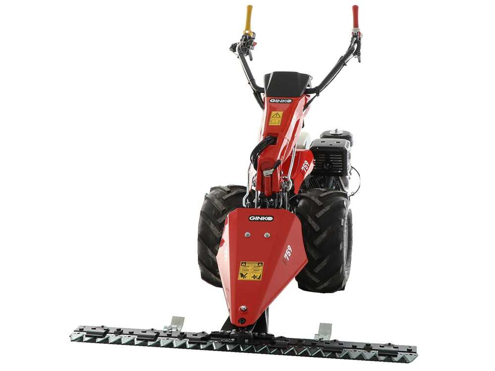 Der selbstfahrende Balkenmäher Ginko MGM FC 759 verfügt über ein 7-Gang-Getriebe, 3 Vorwärts- + 3 Rückwärtsgang + 1 Wendegetriebe, das leicht über einen Hebel unterhalb des Lenkers bedient werden kann. Es ist außerdem mit zwei großen 18×9.50- 8 Traktorrädern ausgestattet, die auf einer starren Achse mit verstellbaren Naben montiert sind.