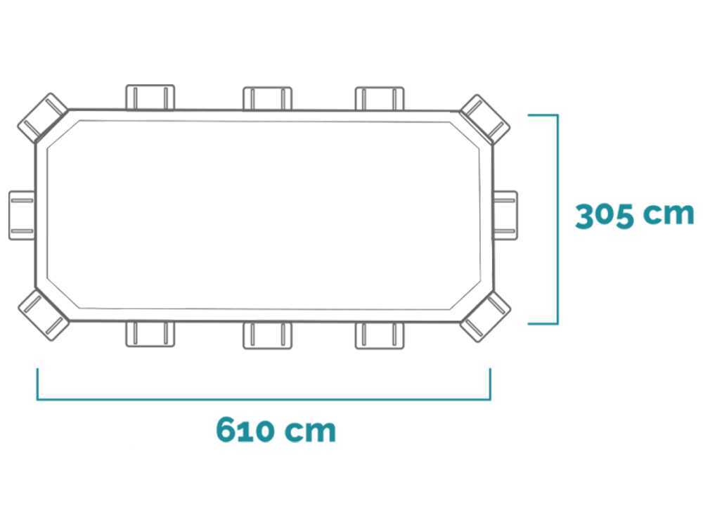 Mit kommerziellen Abmessungen von 610 x 375 x 120 cm und einem Gesamtplatzbedarf von 634 x 575 x 122 cm ist dieser ovale Pool eine perfekte Investition für diejenigen, die Raum und Spaß zu Hause suchen, der die ganze Familie bequem aufnehmen kann.