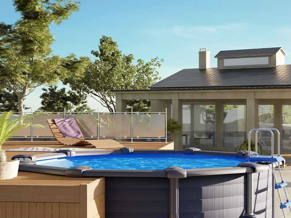 Die graue Auskleidung verleiht einen modernen Look und sorgt in Kombination mit der robusten Konstruktion für einen langlebigen und strapazierfähigen Pool. Die Installation ist schnell und einfach und dauert etwa 3 Stunden mit Hilfe von 2-3 Personen. Eine Betonplatte ist nicht erforderlich, kann aber für mehr Stabilität optional eingebaut werden.
