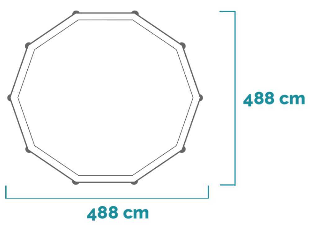Die Abmessungen von 610 cm Länge, 375 cm Breite und 120 cm Höhe bieten reichlich Platz zum Schwimmen und Entspannen. Die Gesamtabmessungen des zusammengebauten Produkts betragen 634 x 575 x 122 cm, was eine perfekte Anpassung an verschiedene Geländeformen garantiert. Es ist außerdem mit 2 seitlichen Pfosten ausgestattet, die dem Aufbau mehr Halt geben.