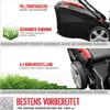 - 4-in-1 – Mähen, Sammeln, Mulchen und Seitenauswurf; 4-Takt Power-Engine Motor; stabiles pulverbeschichtetes Stahlblechchassis; Li-Ion Elektrostart; Reversierstart; ergonomisch geformter Fahrgriff; 8-fache zentrale Schnitthöhenverstellung; Mulchkeil; Seitenauswurf; Hinterradantrieb durch zuschaltbares Leichtlaufgetriebe