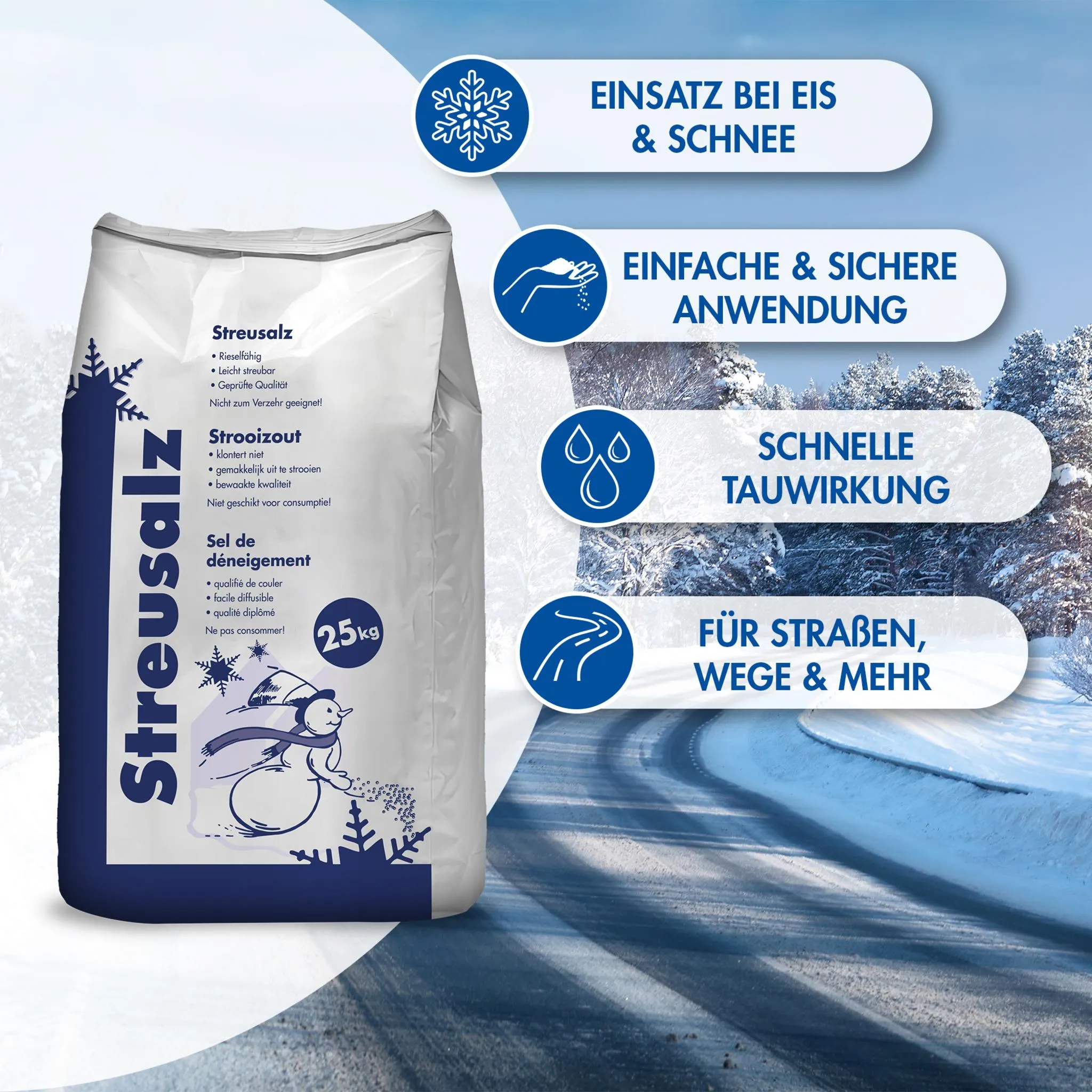 Somit ist das Premium-Streusalz für jegliche Streuer geeignet und ist selbst für Streuer mit kleineren Vorratstrichtern problemlos einsetzbar.