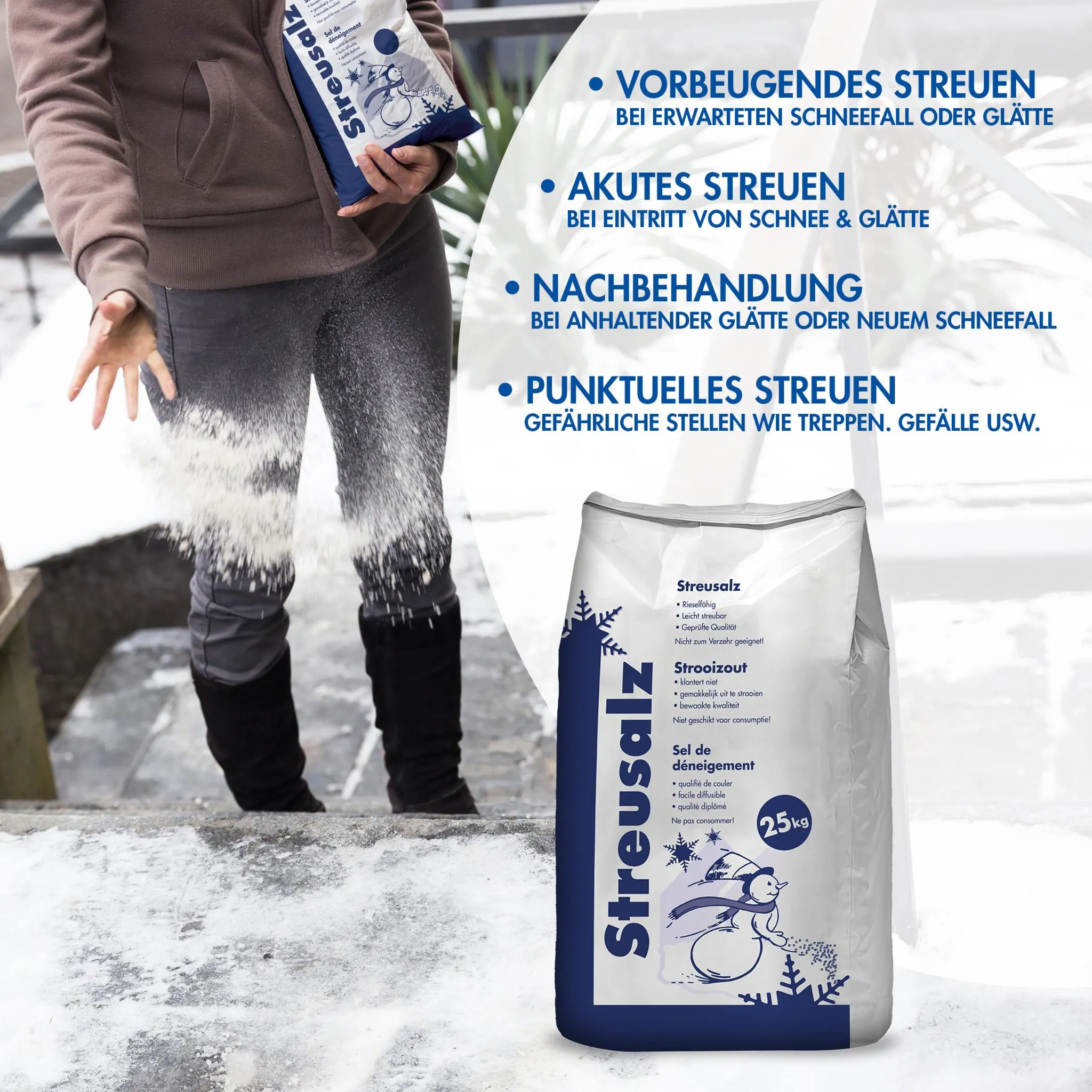 Dieses Streusalz ist ausschließlich für die Handstreuung geeignet oder für Streuer mit einer Förderschnecke.
