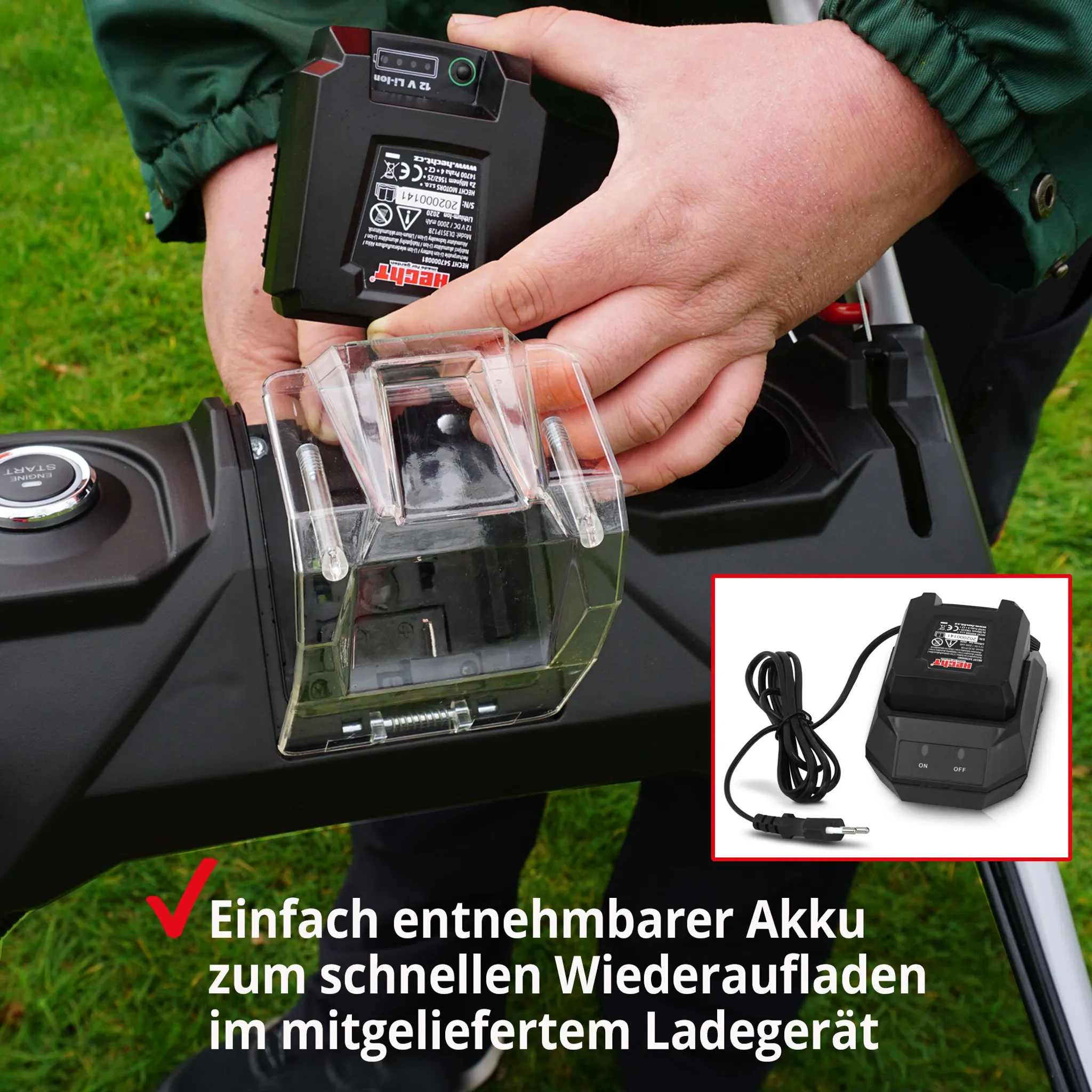 • Elektrostart per Knopfdruck dank Li-Ion Akku