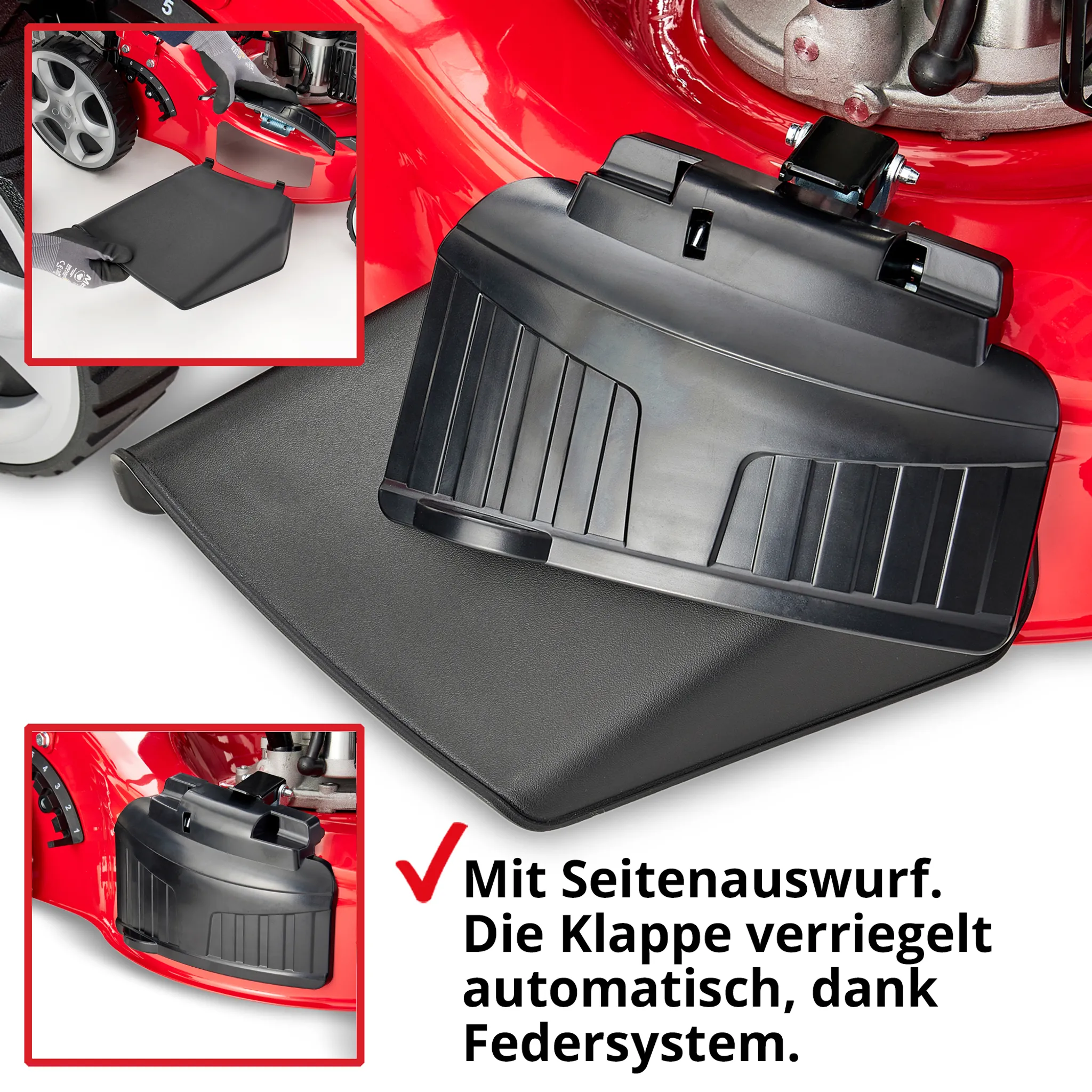 Funktionen: Mähen, Fangen, Mulchen, Seitenauswurf, Laub-/Äste zerkleinern