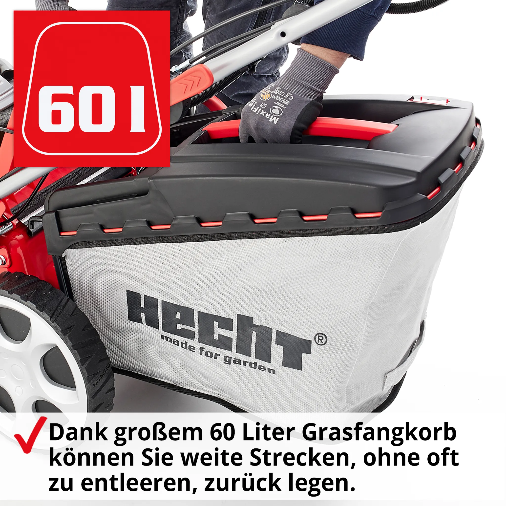 HECHT 548 SWE Rasenmäher Benzin | mit Antrieb | Elektrostart | 46 cm Schnittbreite | 5 PS | 5in1 | 60L Fangkorb