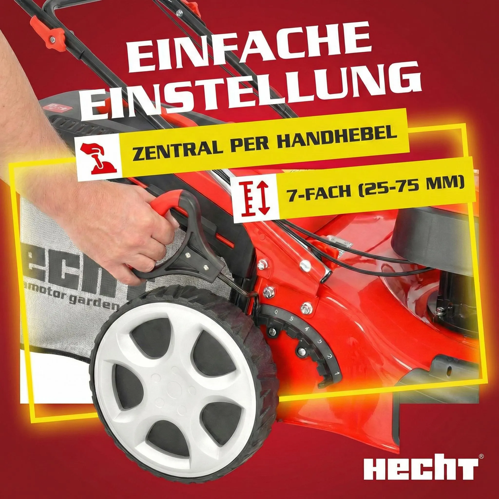 7 verschiedene Schnitthöhen zwischen 25–75 mm wählbar