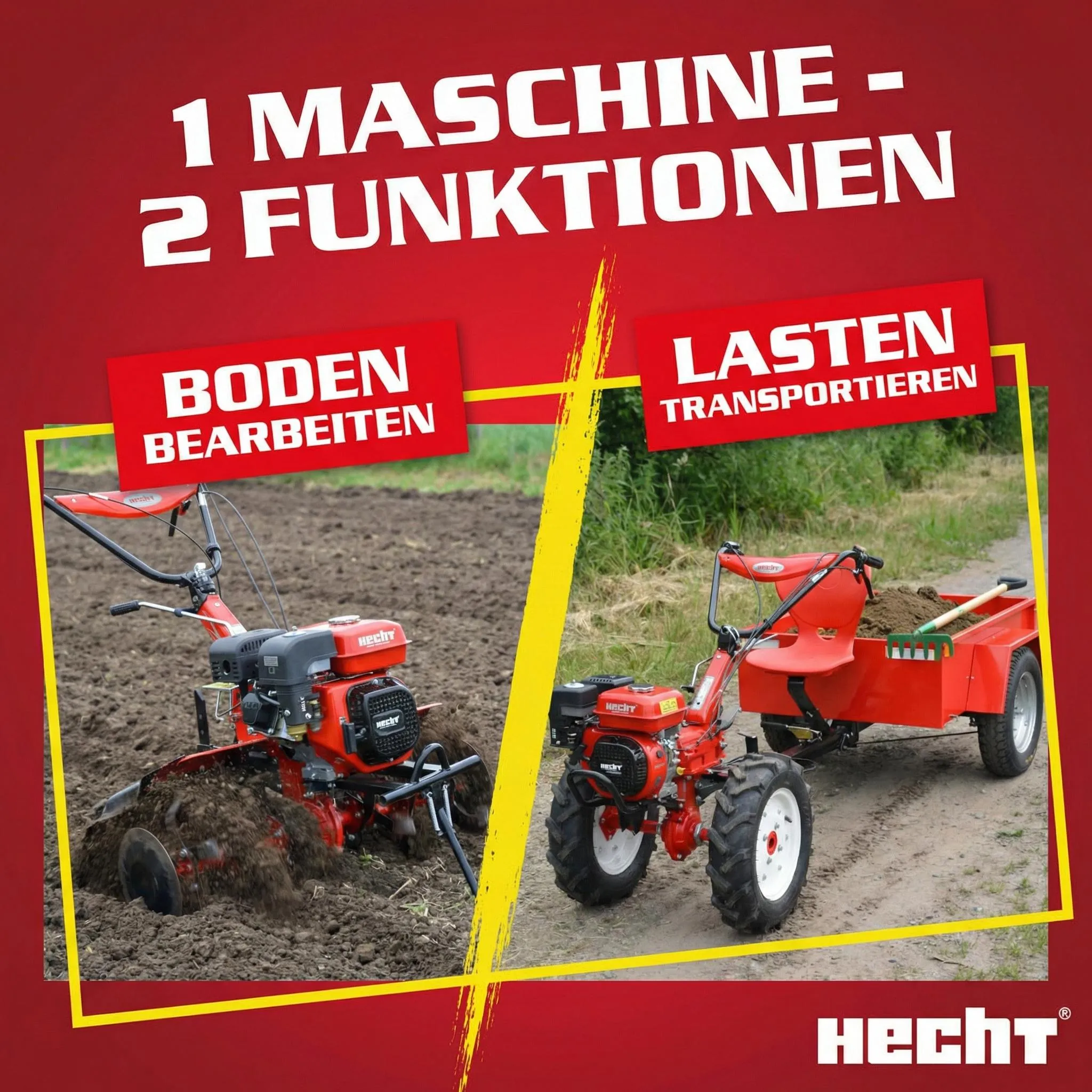 1 x HECHT Gartenhacke Modell 7100 / 1 x Anhänger HECHT Modell 57100 / 1 x Radsatz